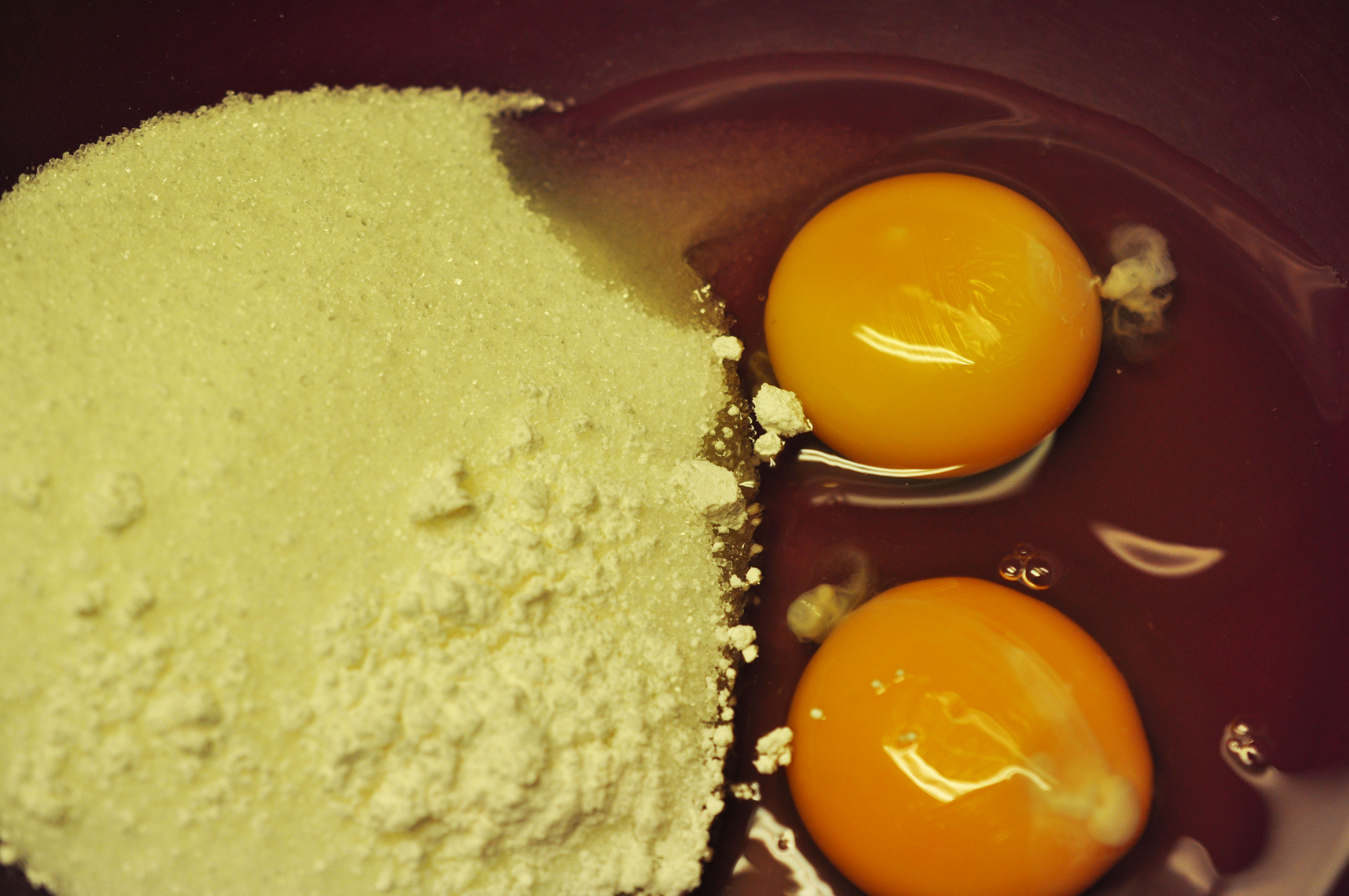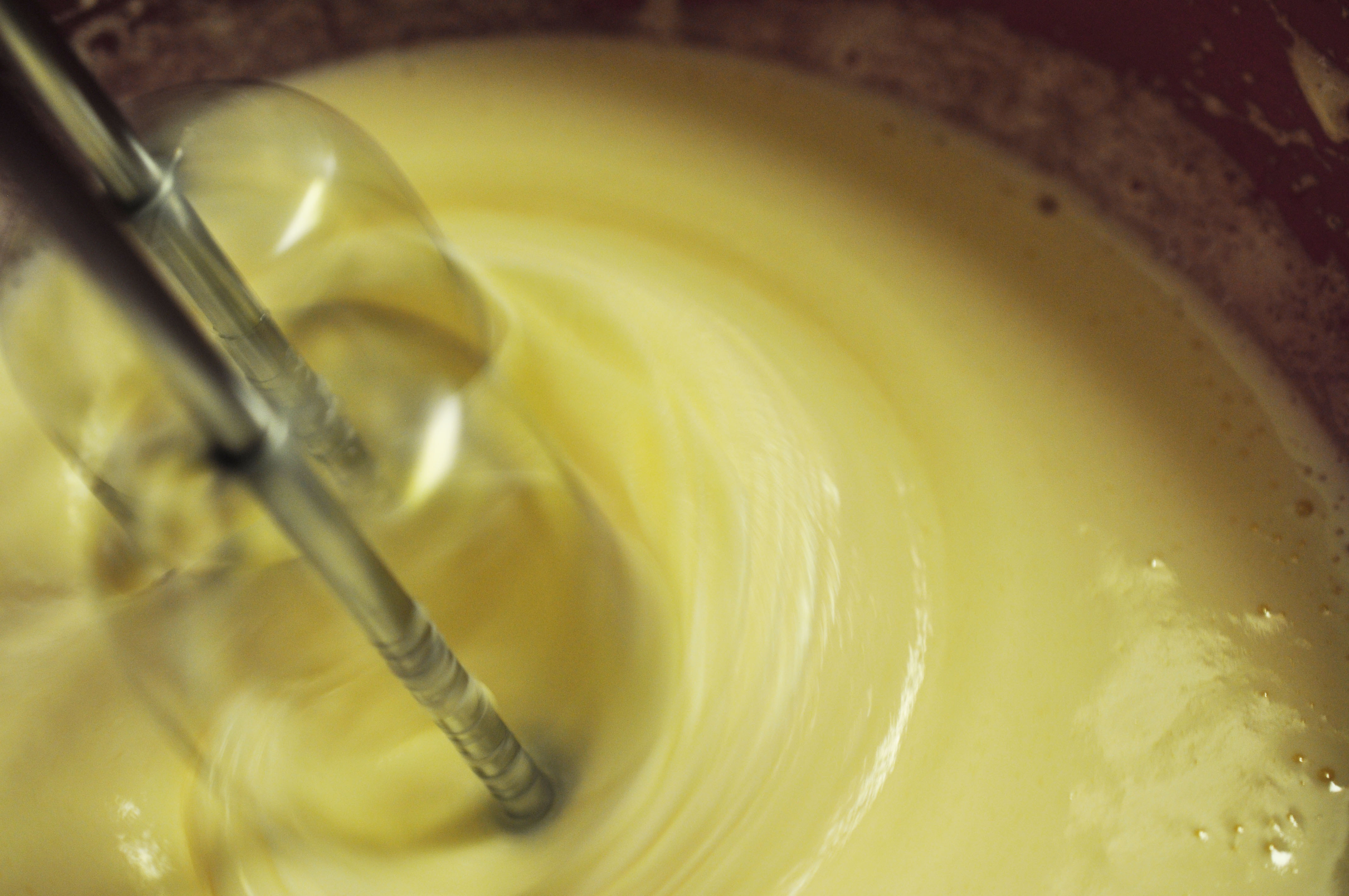 Vispa ägg, vaniljsocker och strösocker vitt och pösigt.