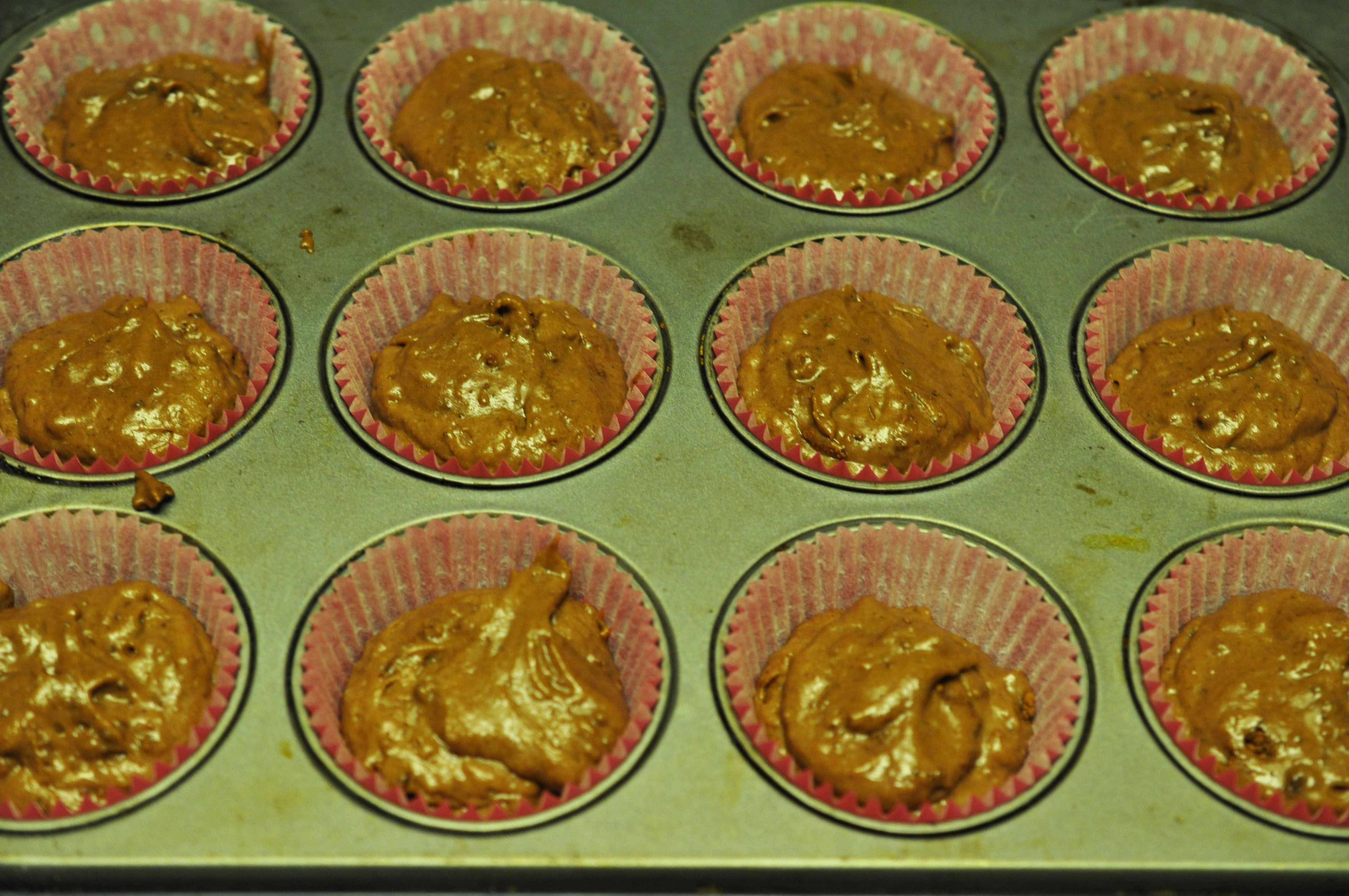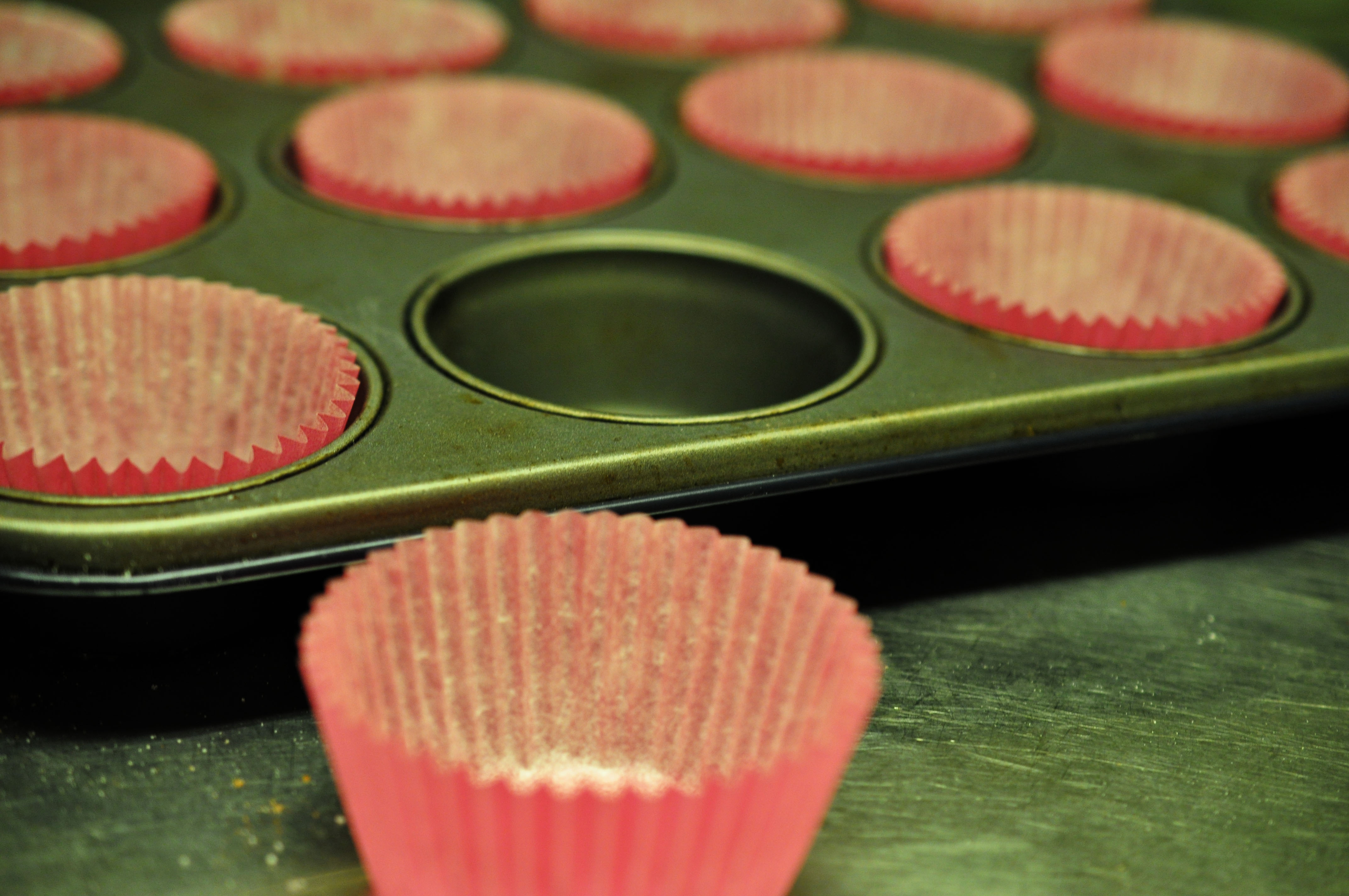 Placera ut muffinsformar i en muffinsplåt och fyll formarna med 2/3 smet.