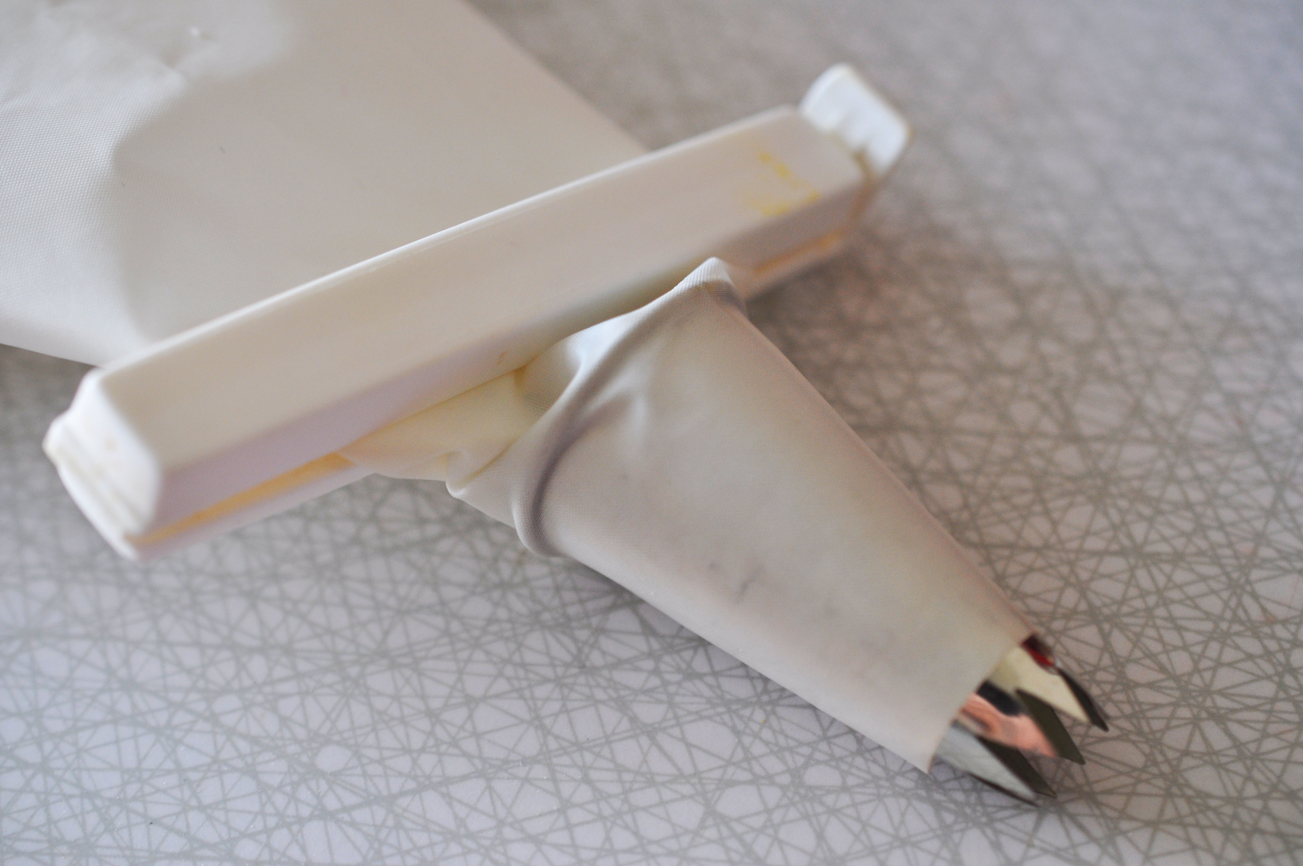 Tips! Sätt en klämma, så inte frostingen rinner ut medans du fyller den.