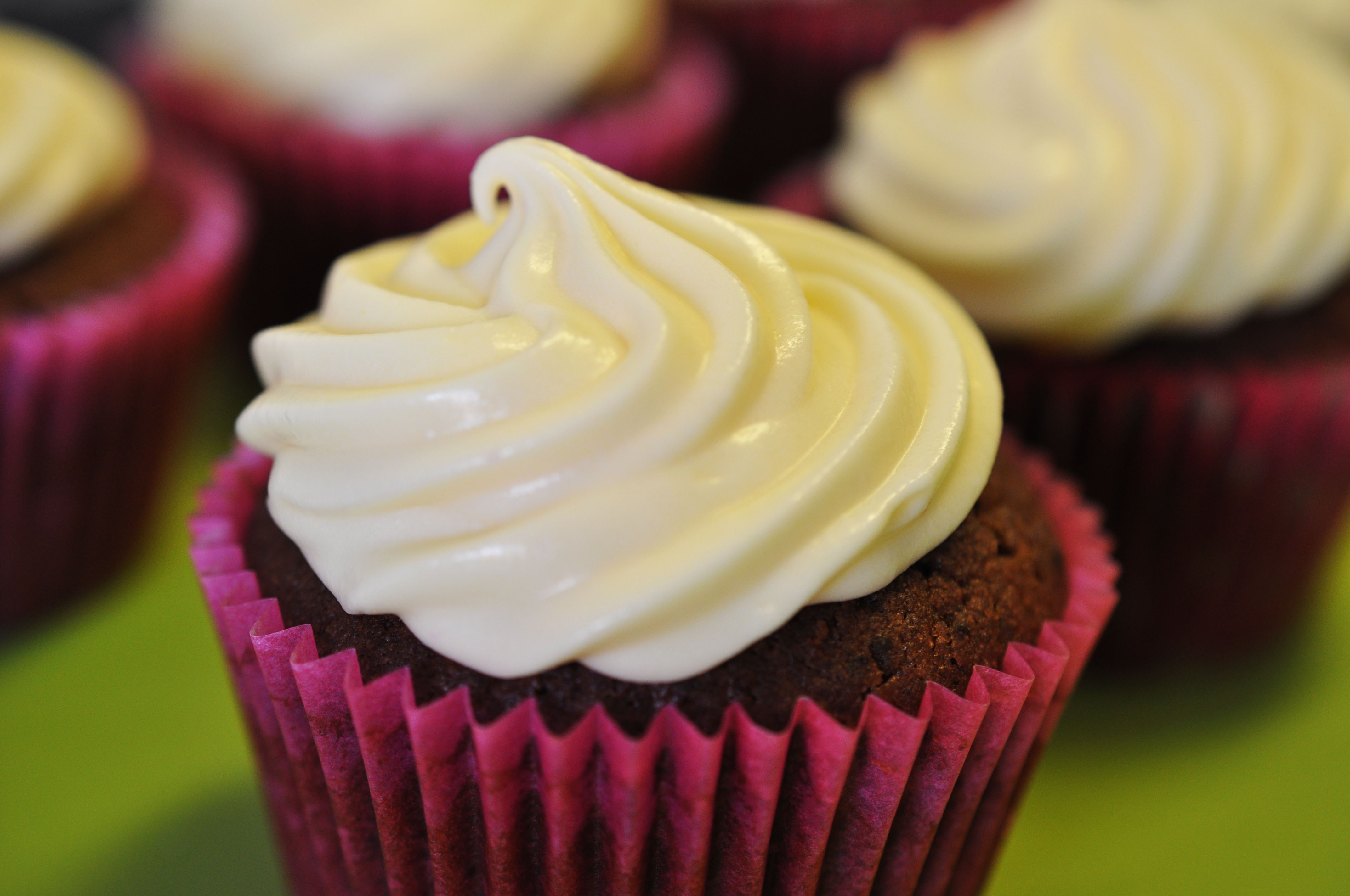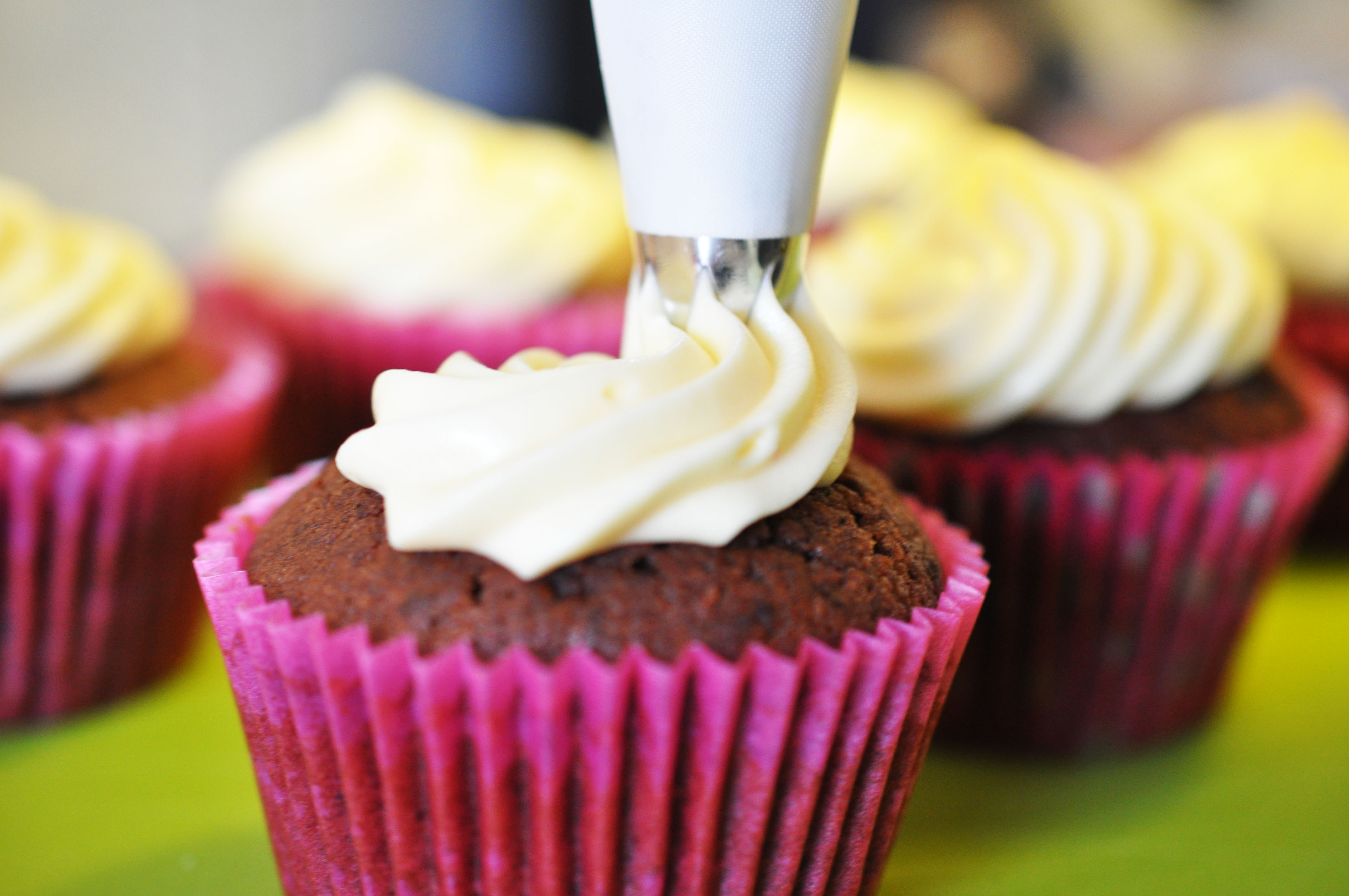 Om man vill lyxa till chokladmuffinsen så kan man göra en frosting! Jag har valt att göra en med vaniljsmak. Frostingen spritsas på när muffinsarna har svalnat.