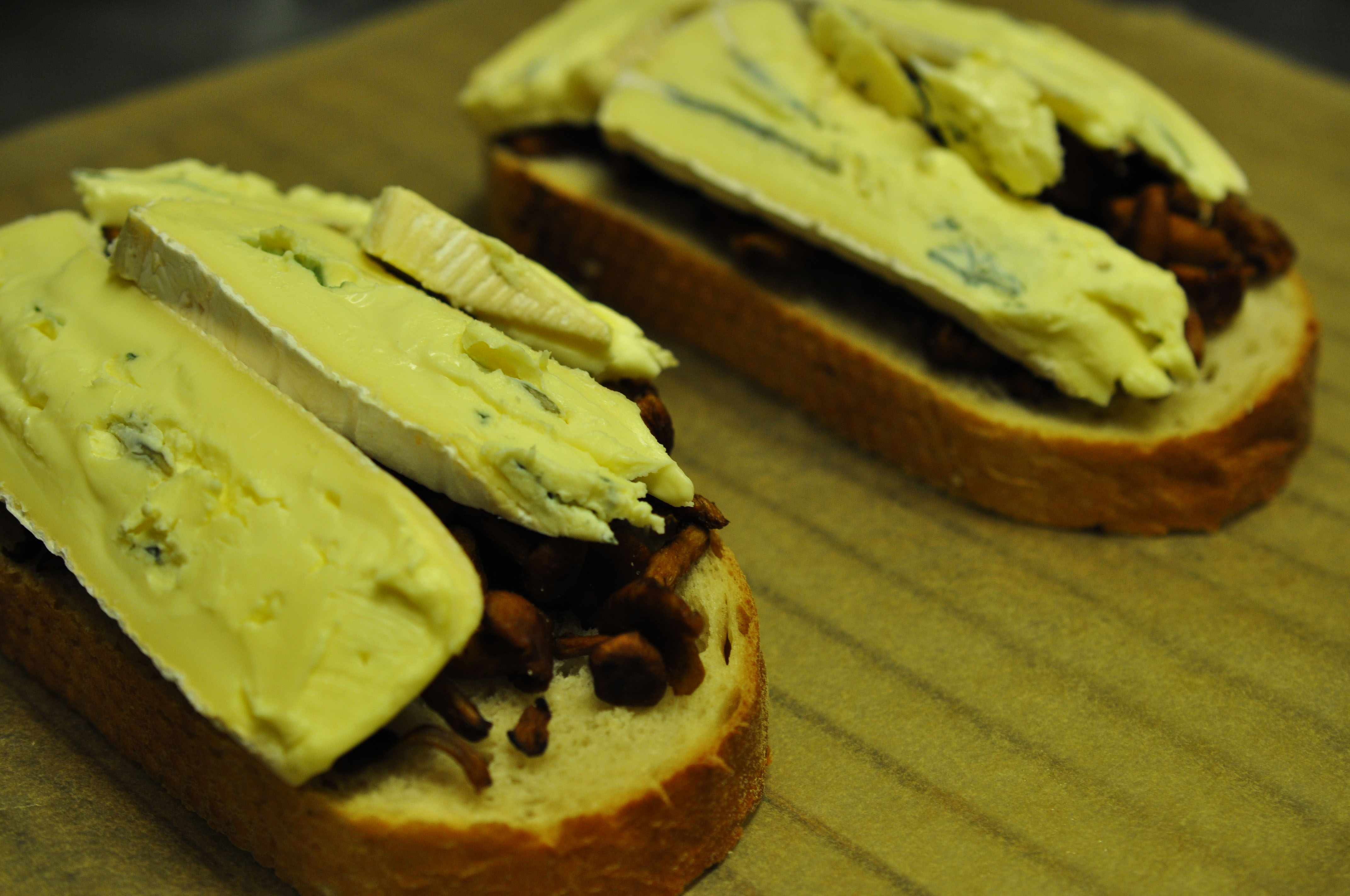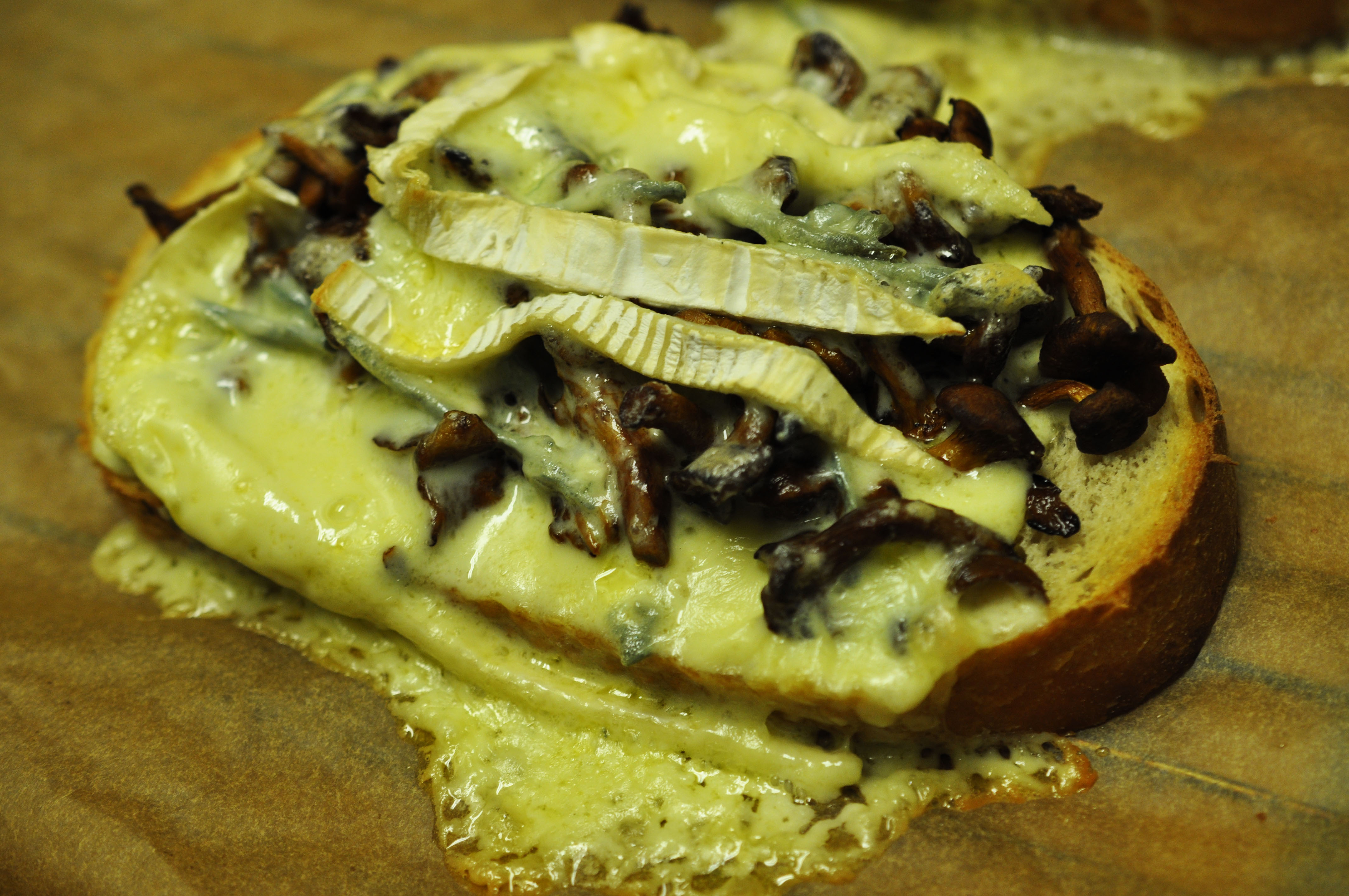 Lägg den skivade Cambozolan och de smörstekta kantarellerna på brödet.