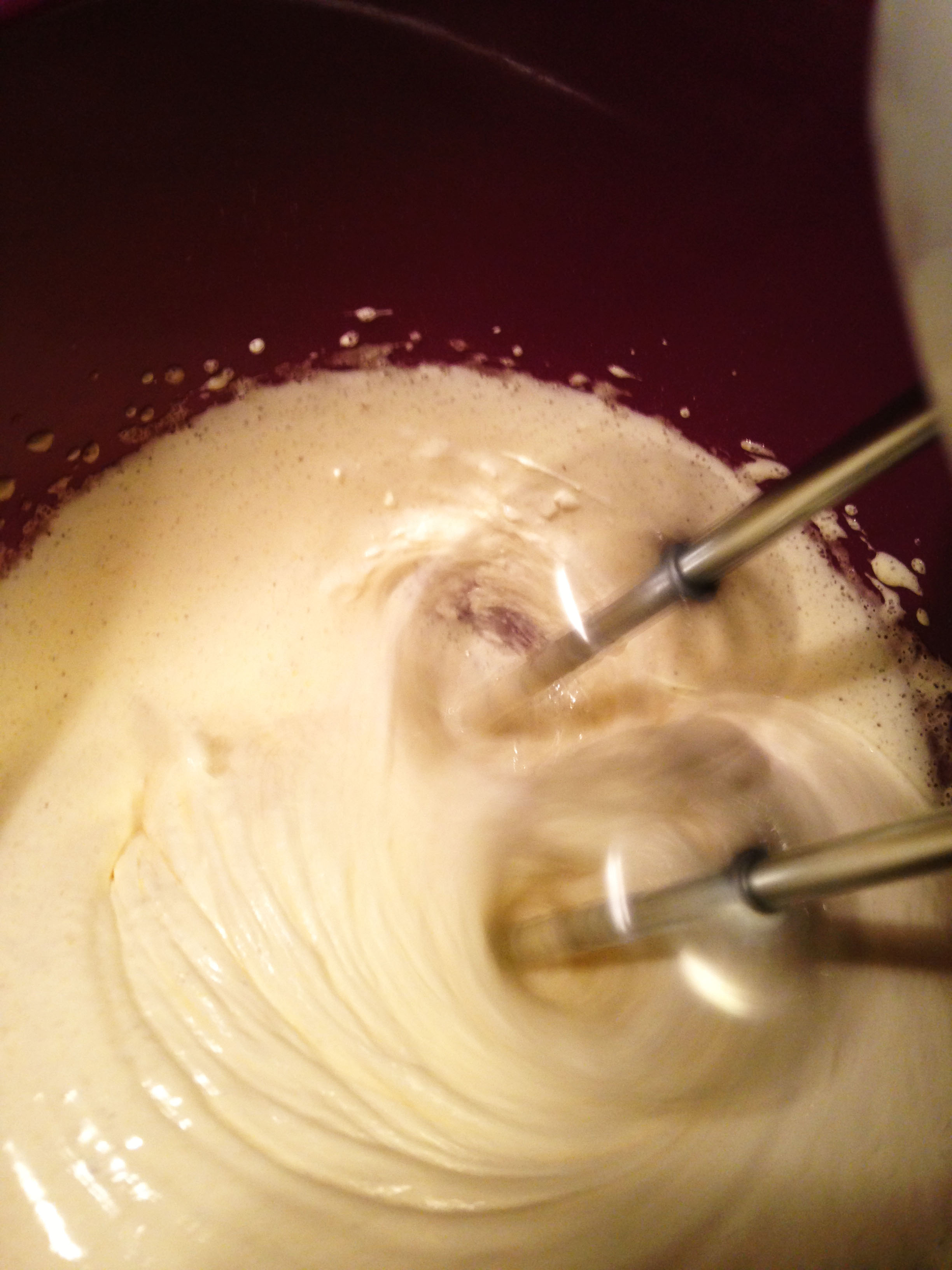 1. Vispa äggulor, strösocker, sirap och vanilj med elvisp i ca 5 minuter till en vit fluffig smet.