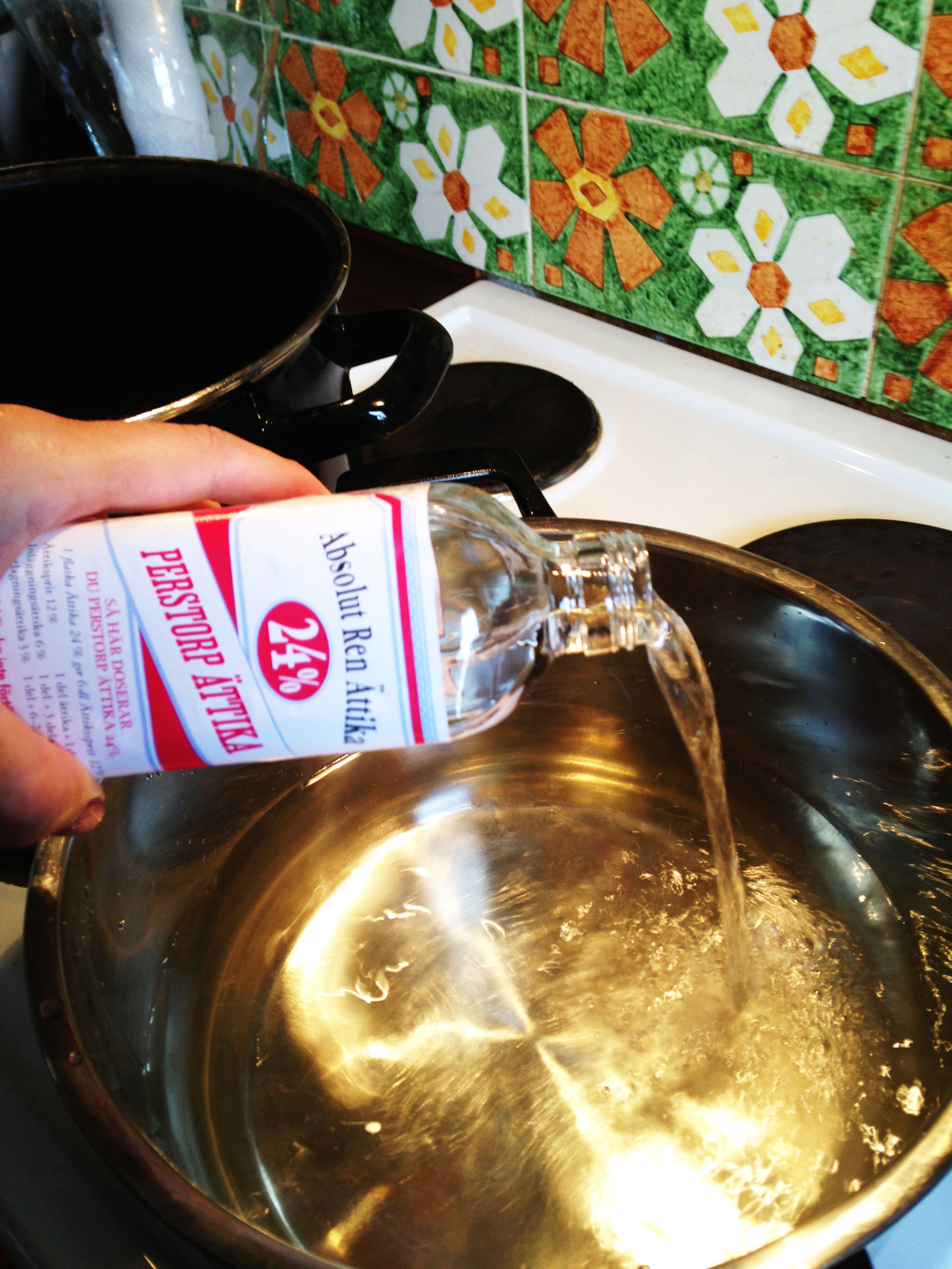 6. När du ska hälla i lagen så är ett tips att göra ett hål med all gurka att hälla i, så skvätter det inte så mycket. För lagen är mycket het!