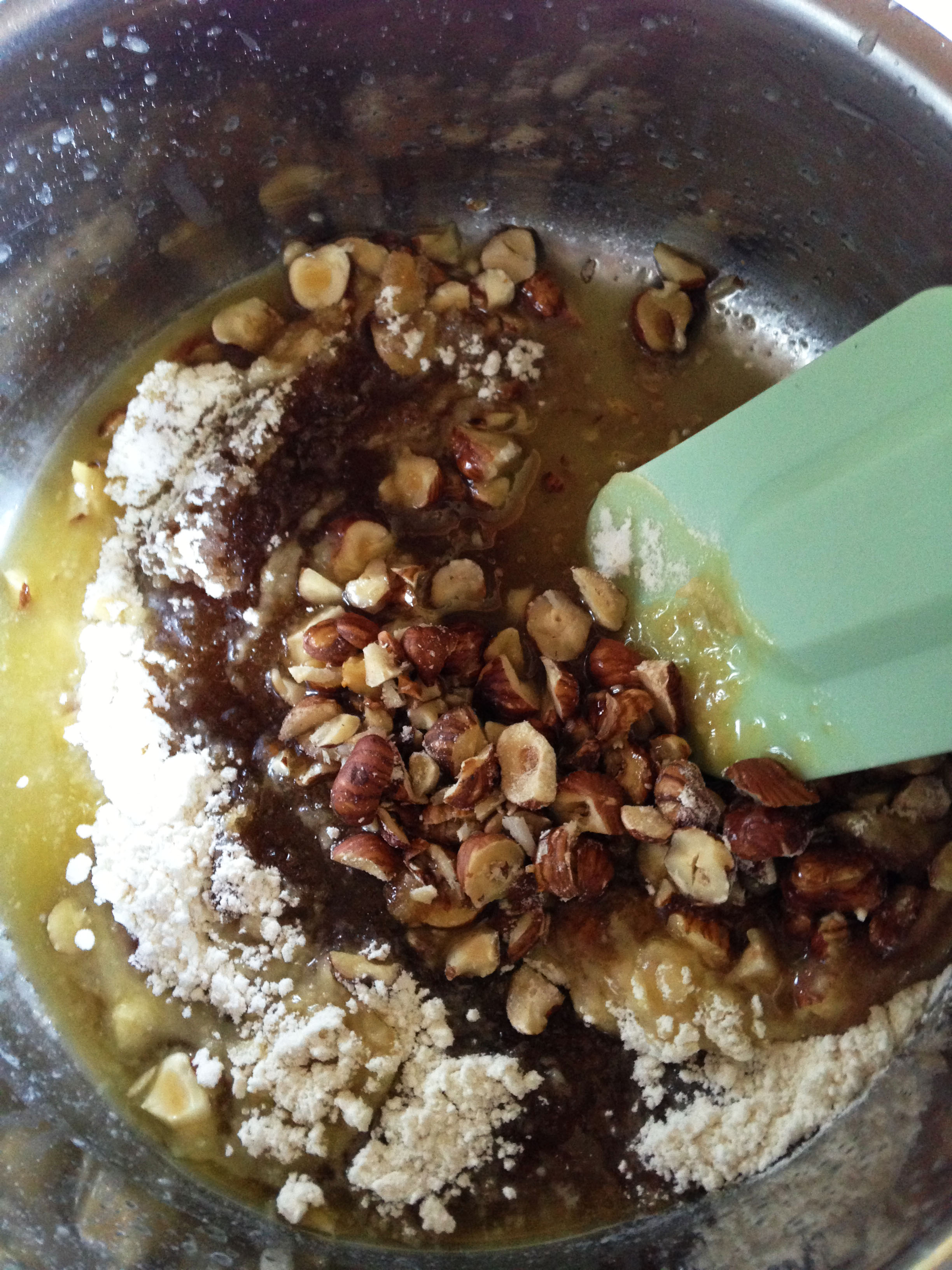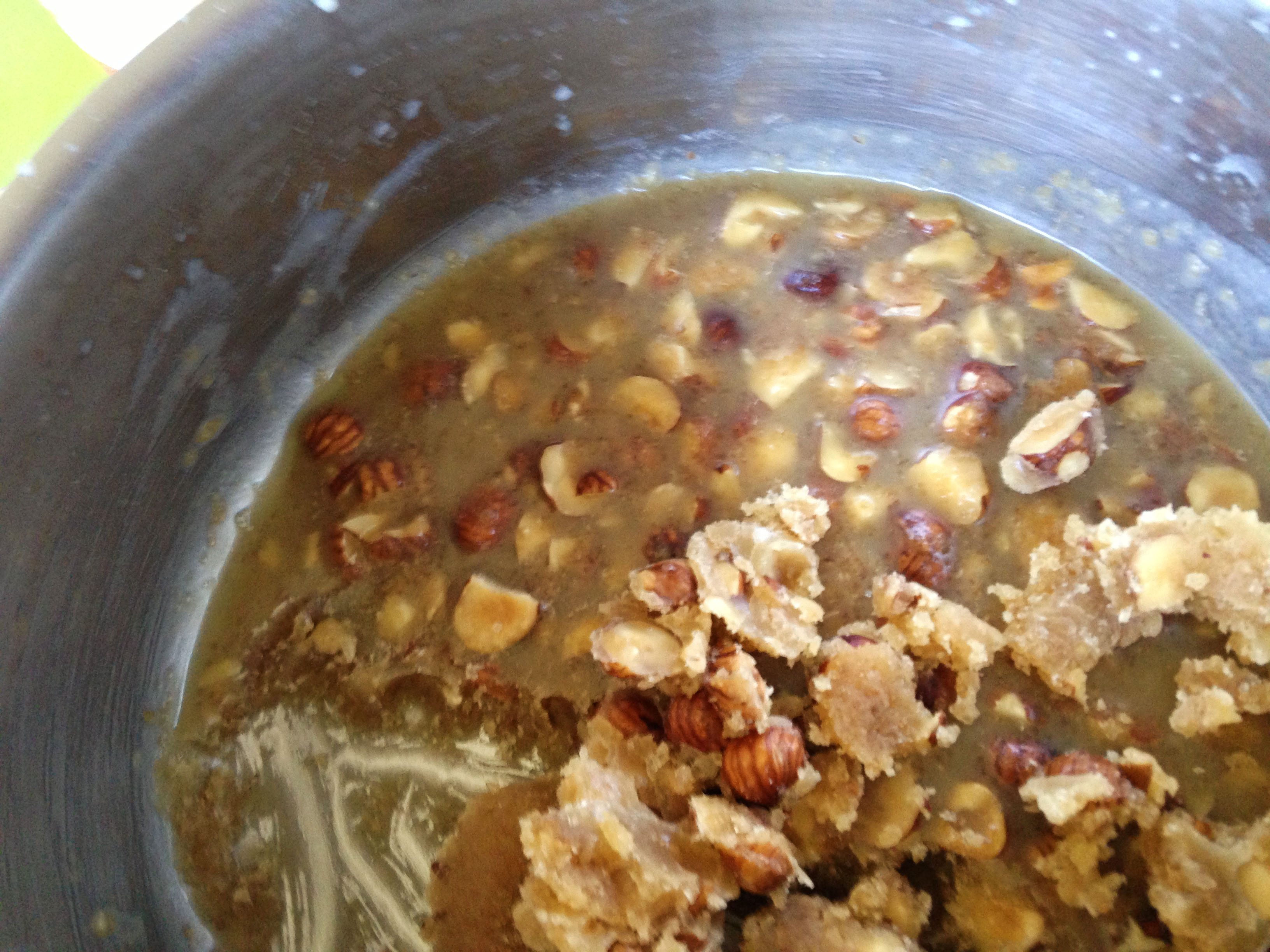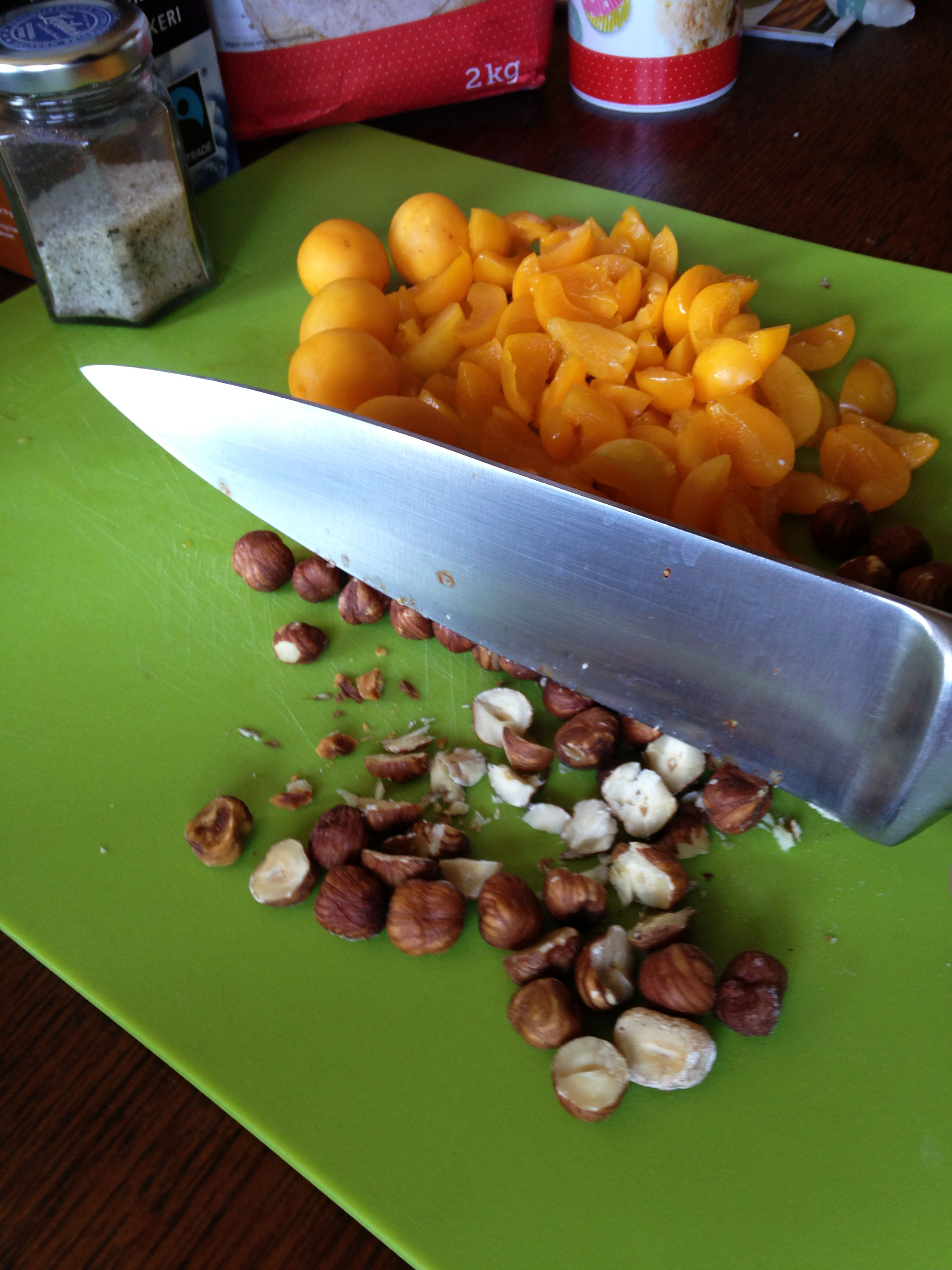 1. Hacka hasselnötterna grovt. Kärna ur och dela plommonen i bitar.