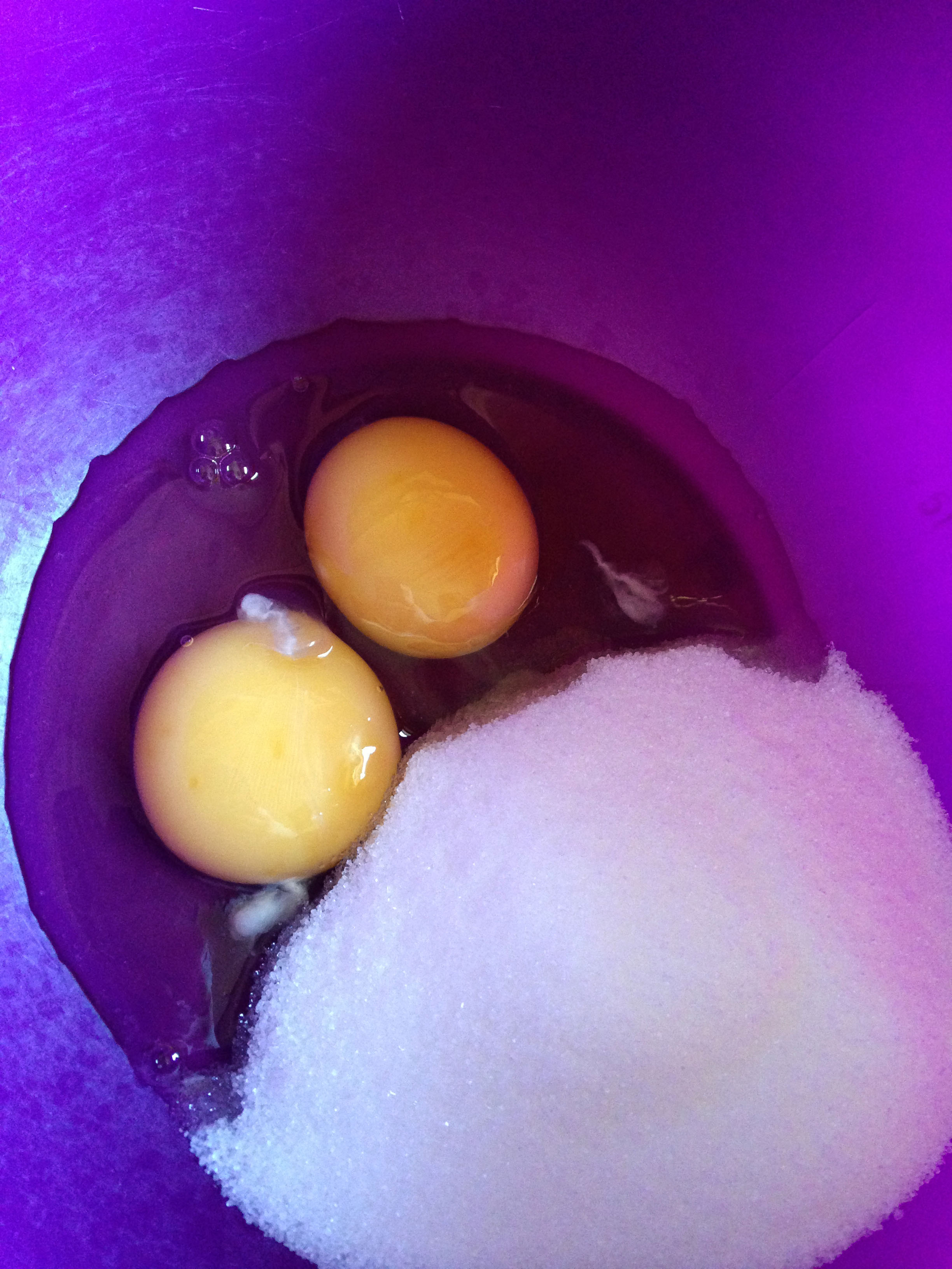 Smält smöret. Vispa ägg och strösocker luftigt.