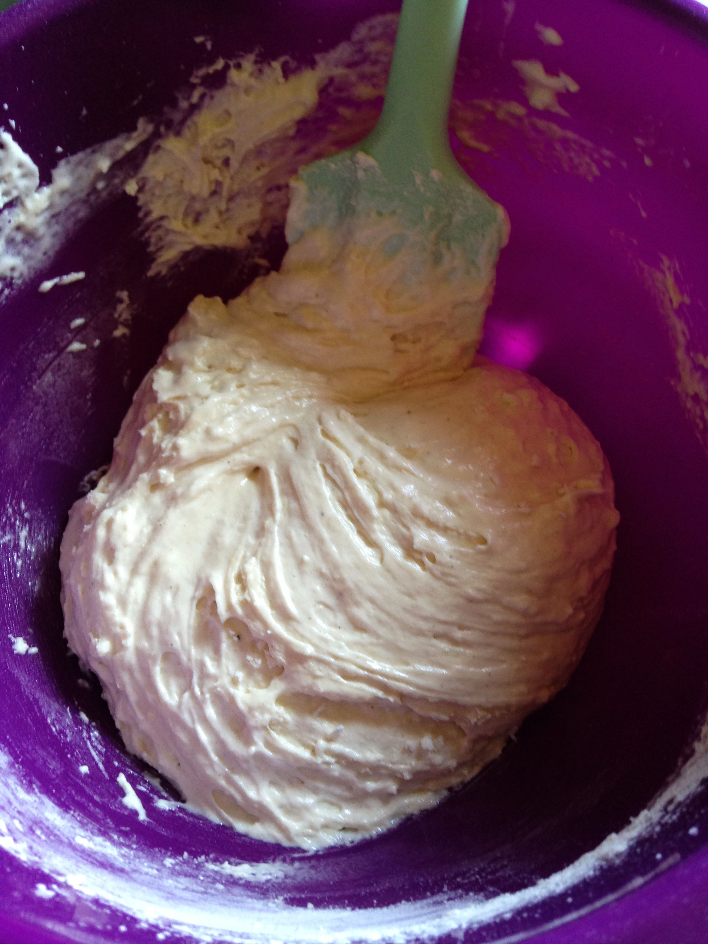 4. Blanda mjöl, bakpulver och vaniljsocker. Vänd ner mjölblandningen i äggsmeten.