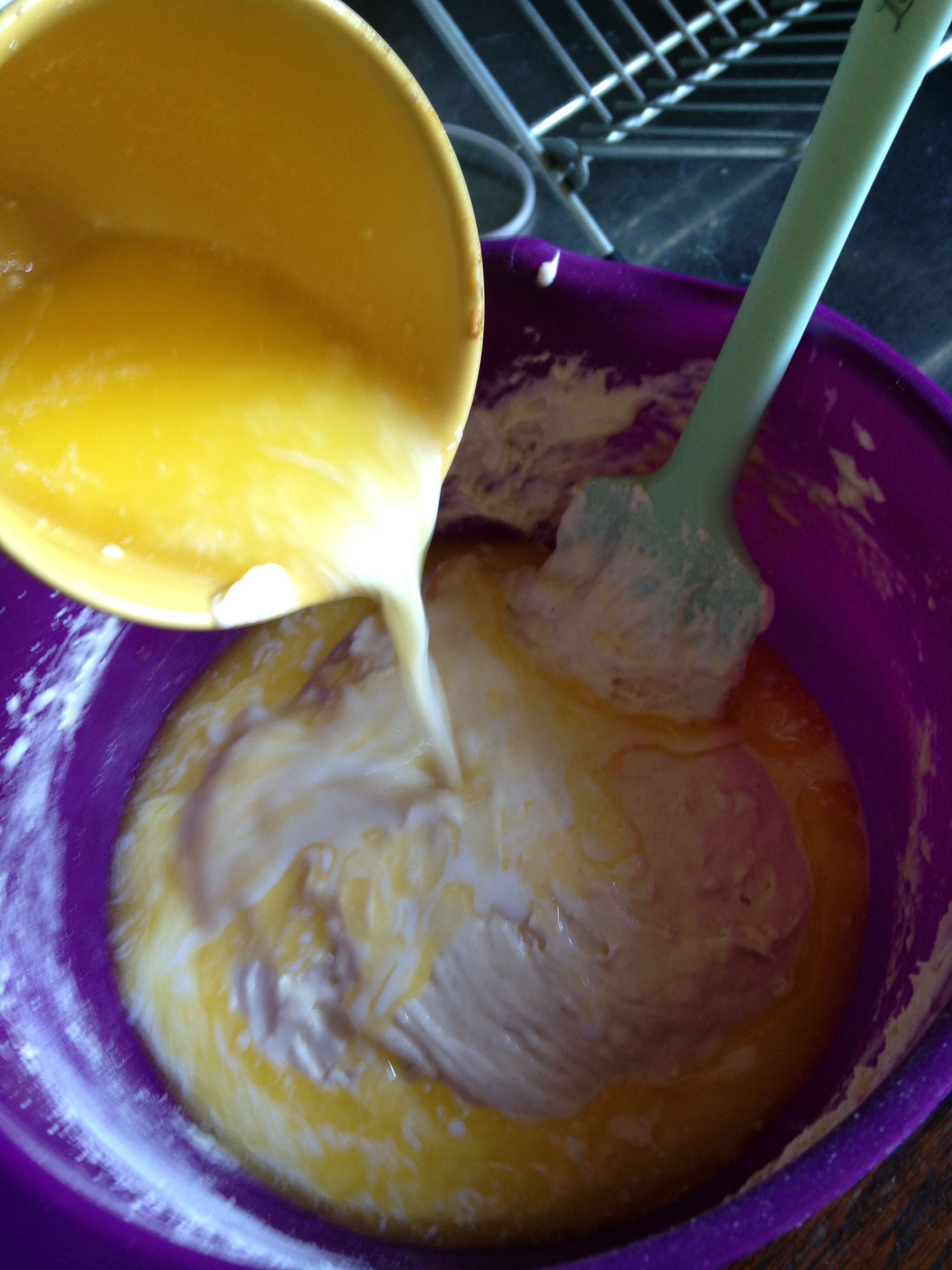 5. Tillsätt smöret tillsammans med mjölken. Rör ihop till en jämn smet.