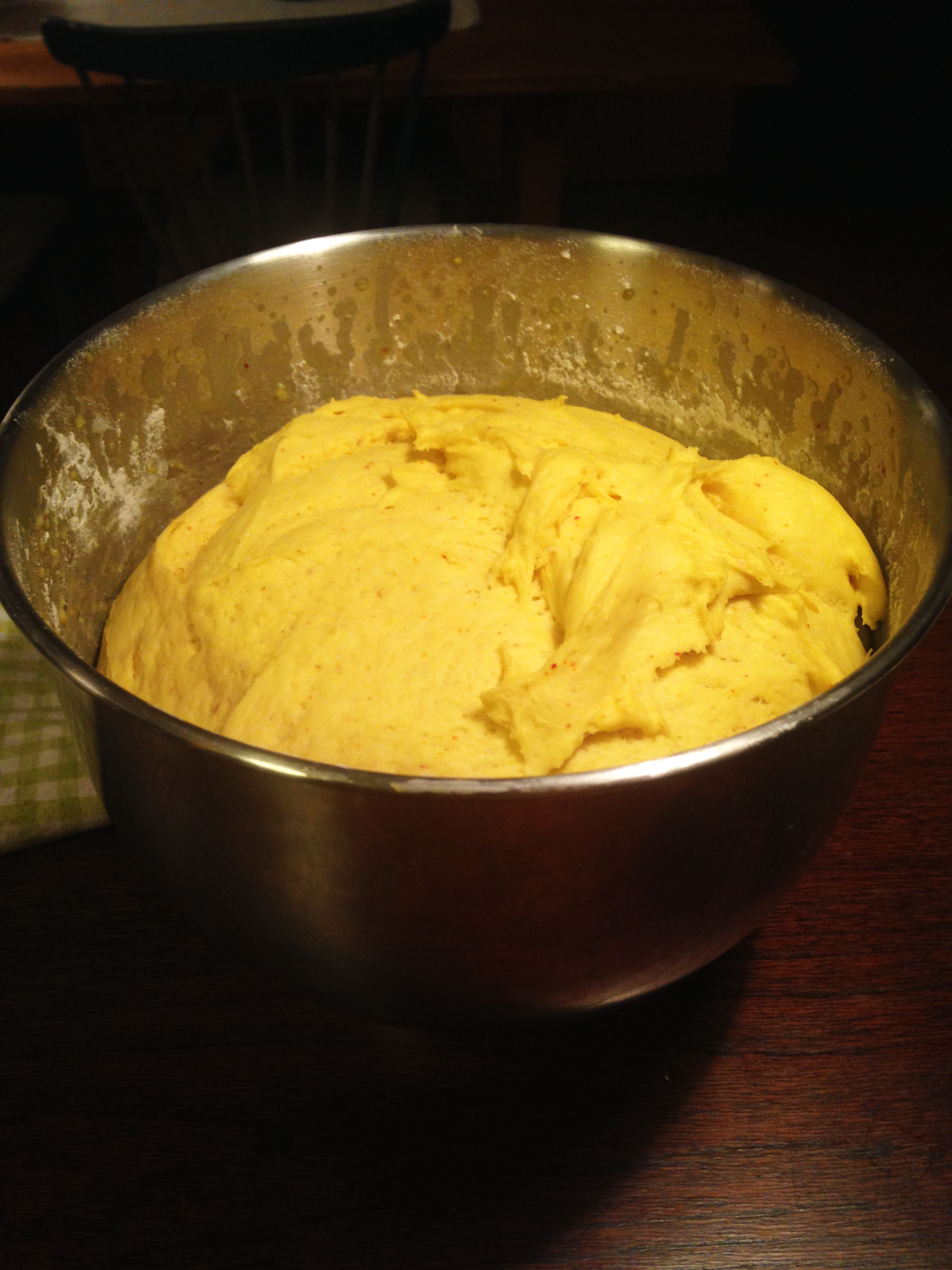 1. Smält smör och häll i mjölk och saffran. Värm till 37 grader.