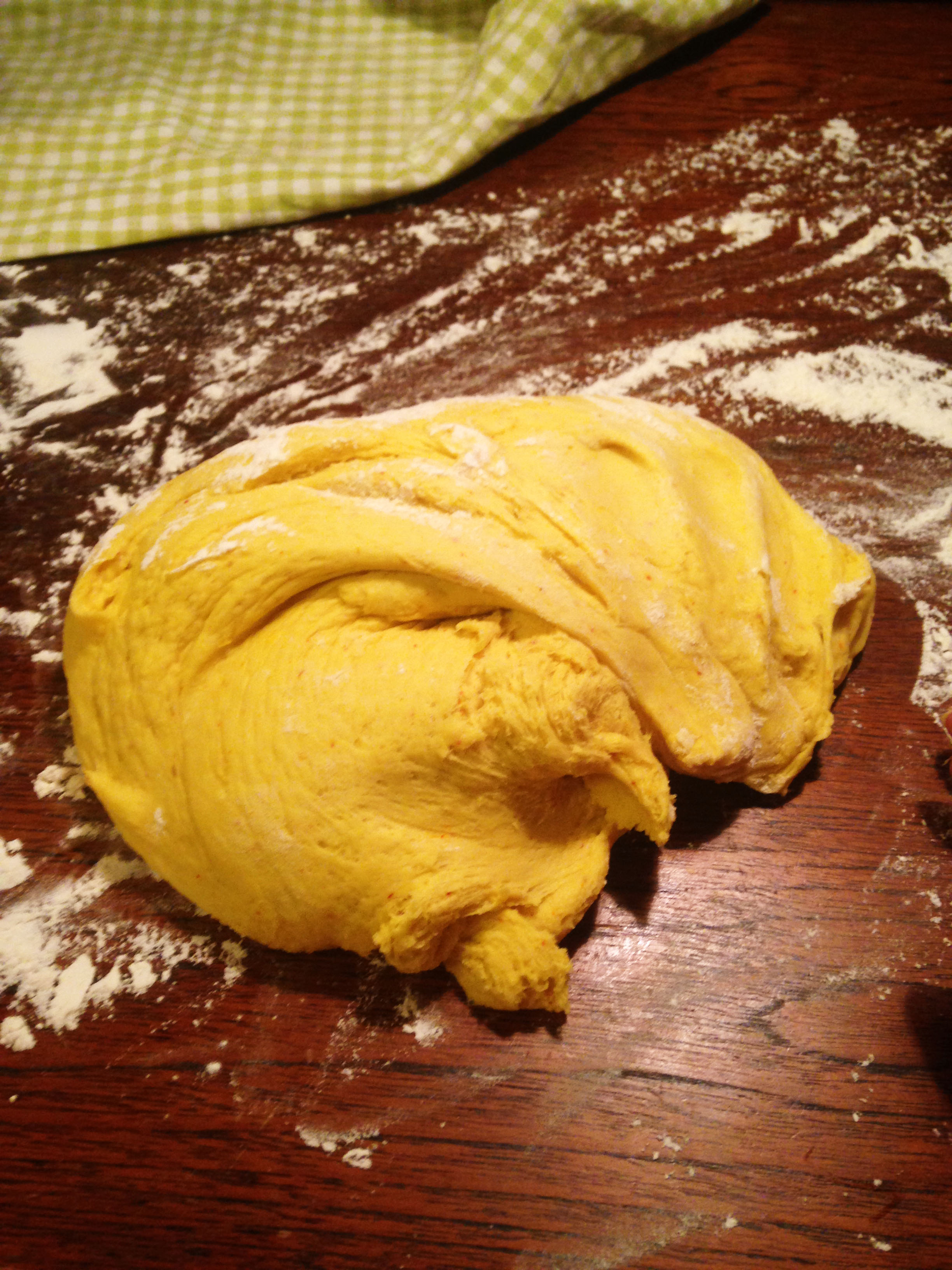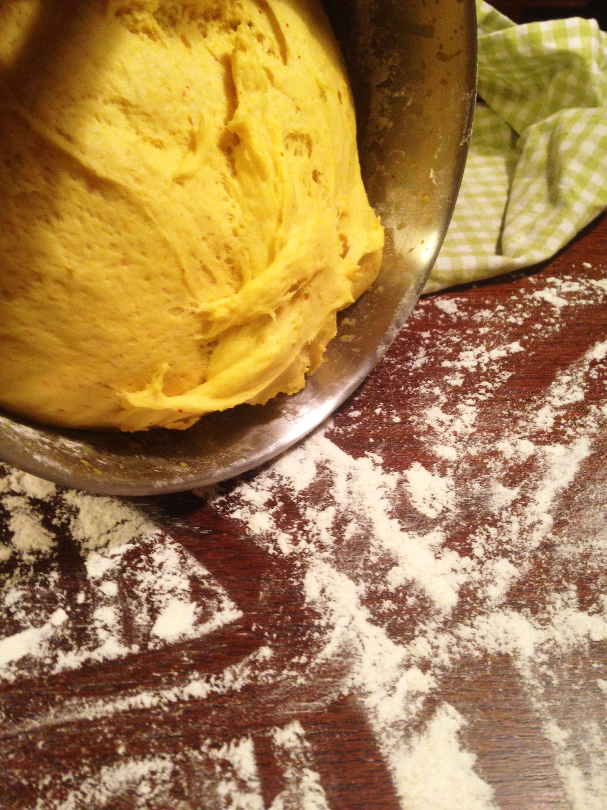 6. När degen jäst färdigt knådar du den lite. Kanske behövs det lite mer mjöl.