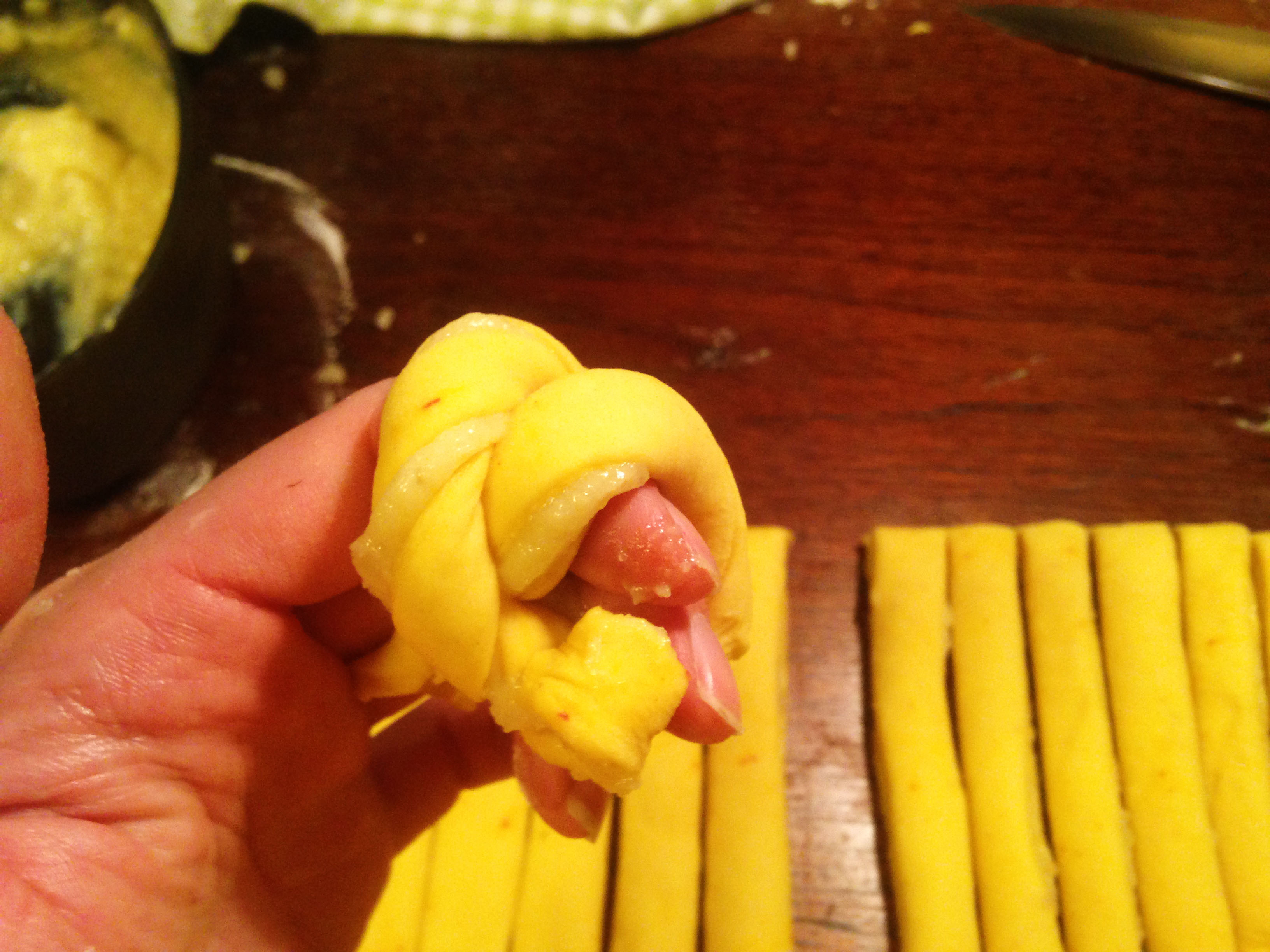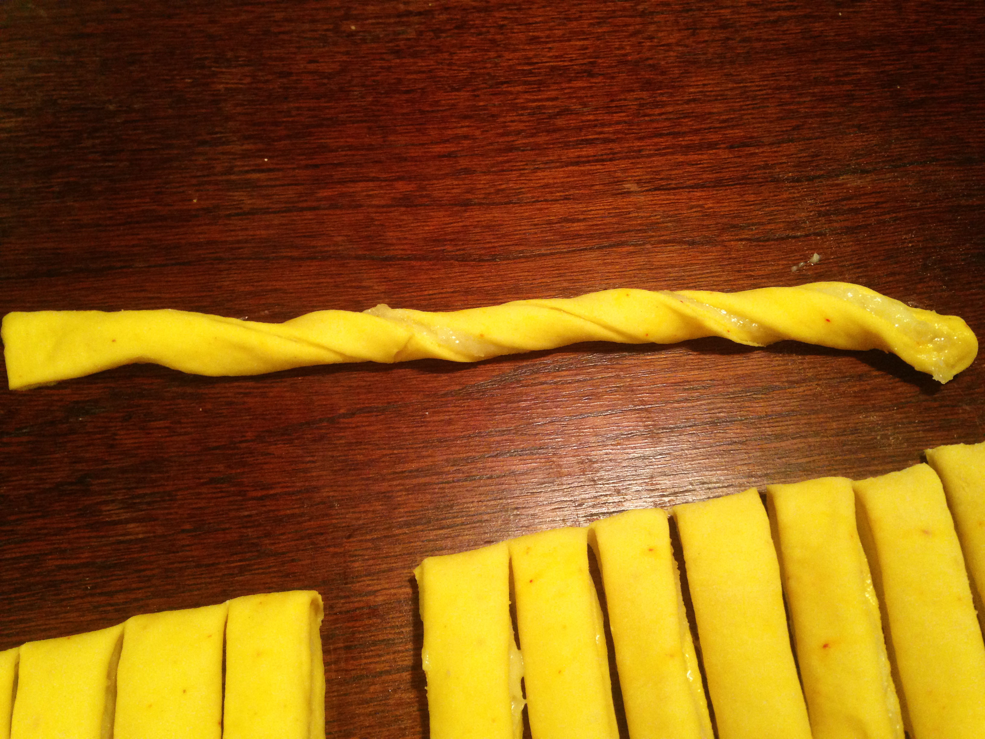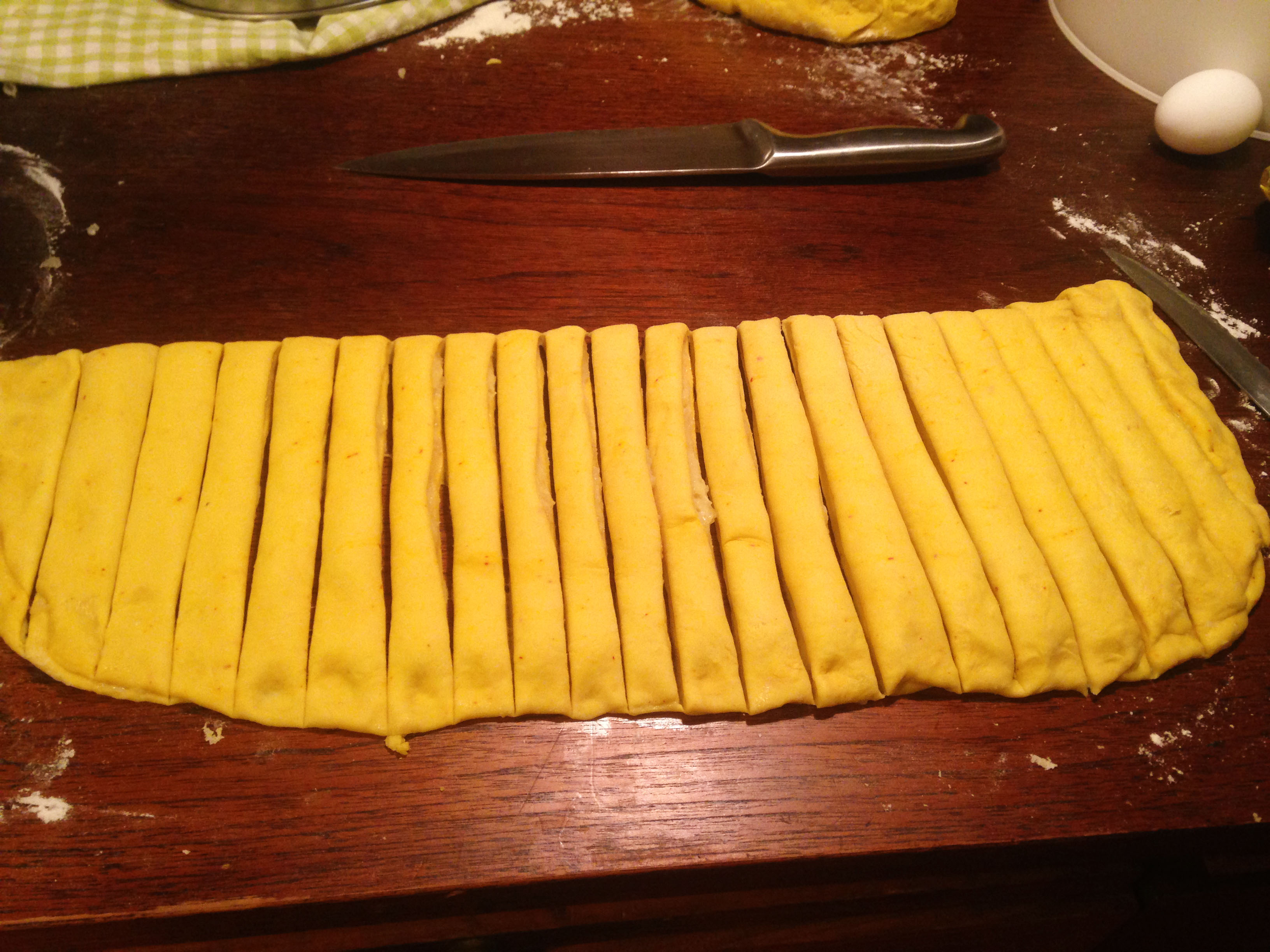 9. Skär degen i ca 1 cm remsor.