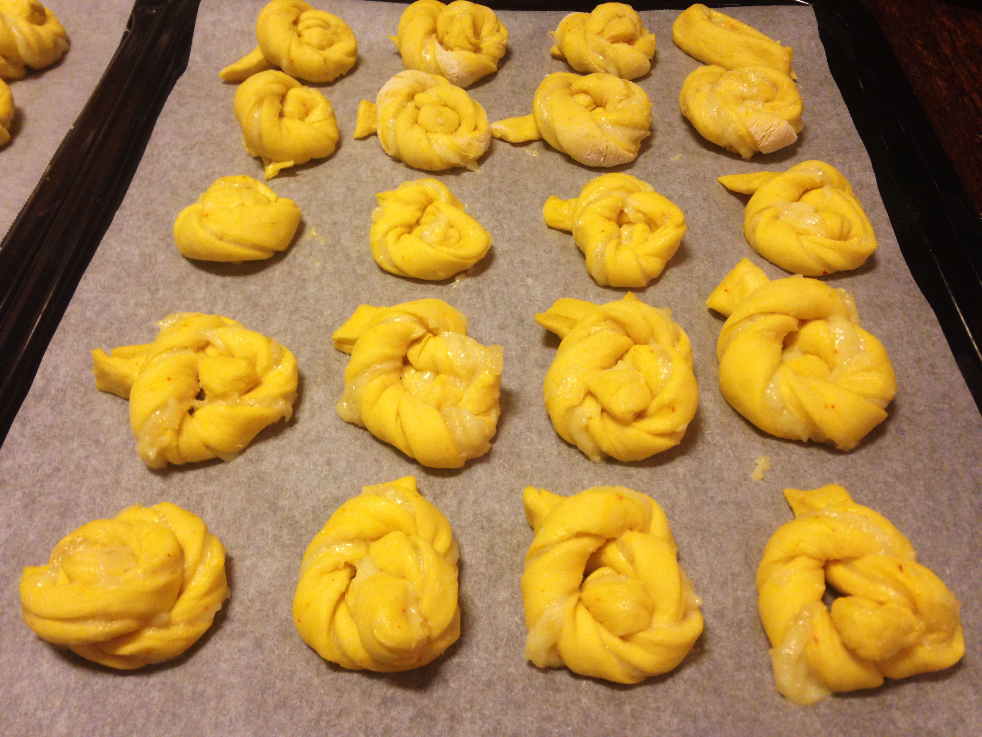 11. Lägg på en plåt med bakplåtspapper och jäs ca 30 min.
