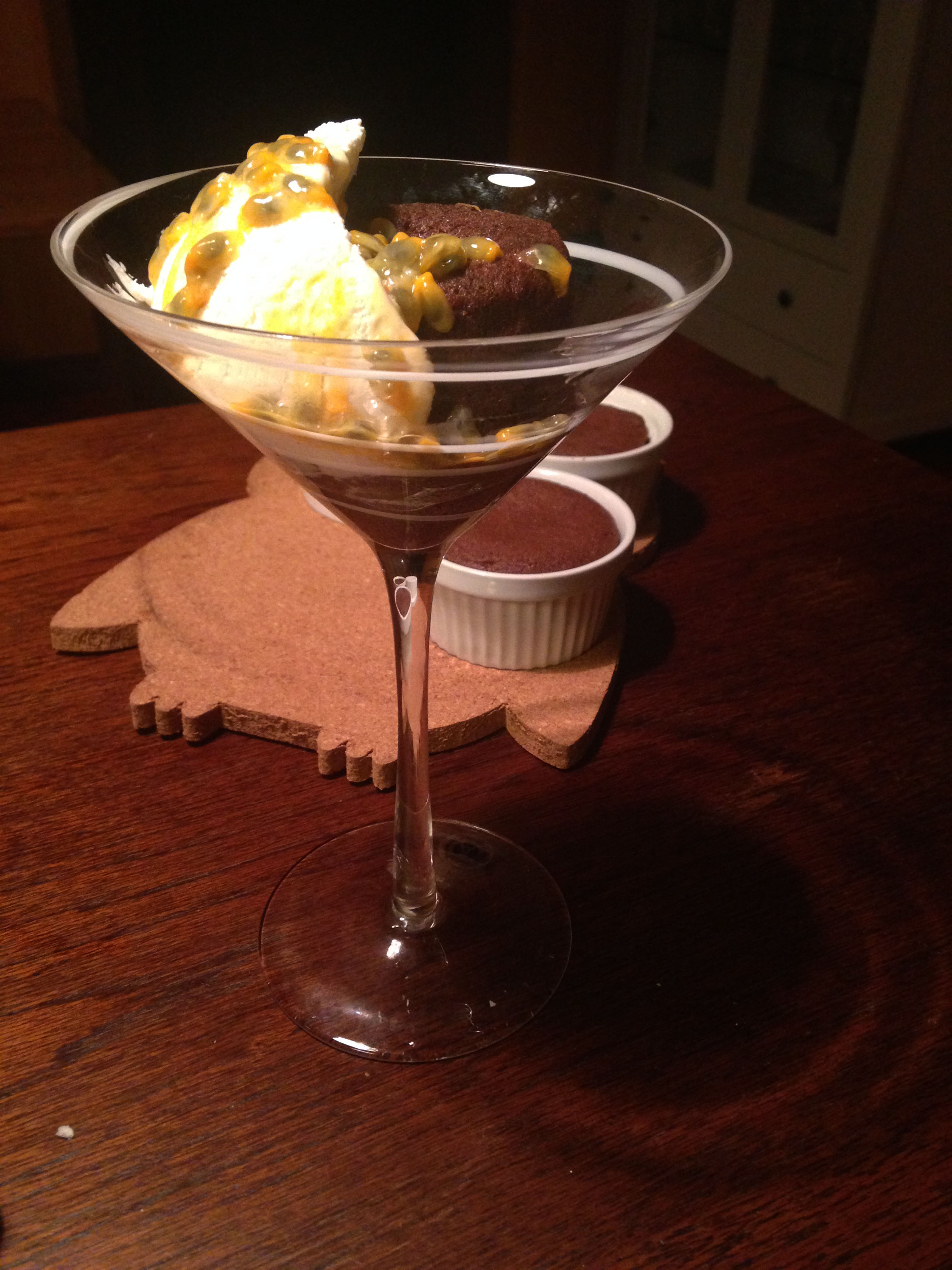 Med lite vaniljglass, färska hallon, färska jordgubbar och passionsfrukt.
