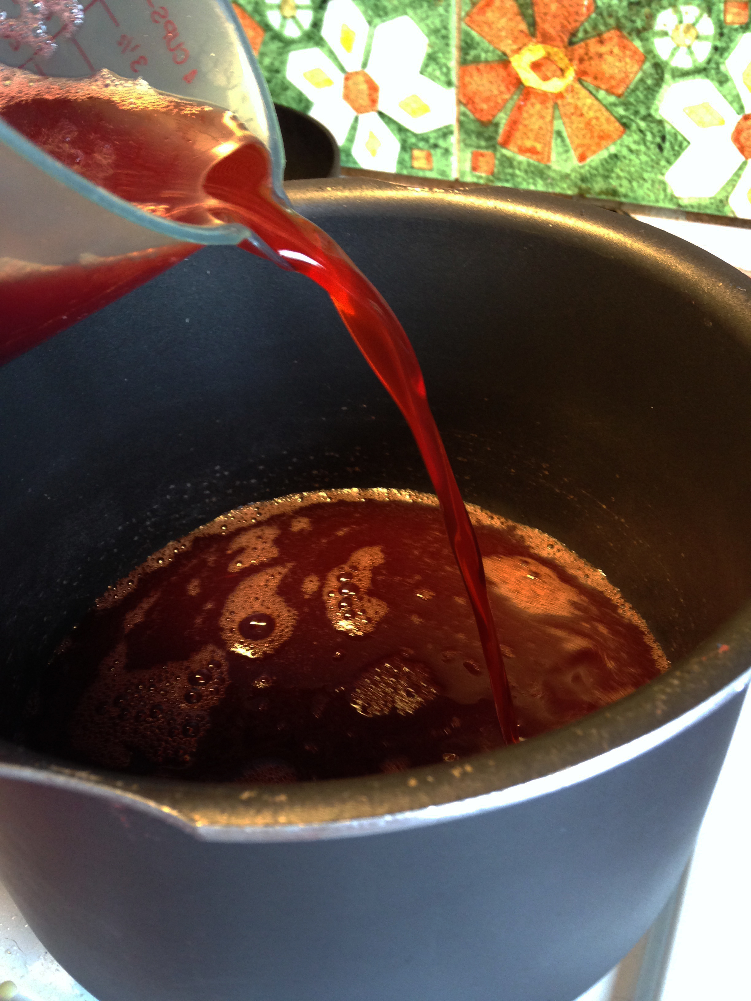 4. Mät upp saften och tillsätt 5 dl strösocker och 1 krm natriumbensoat per liter saft.