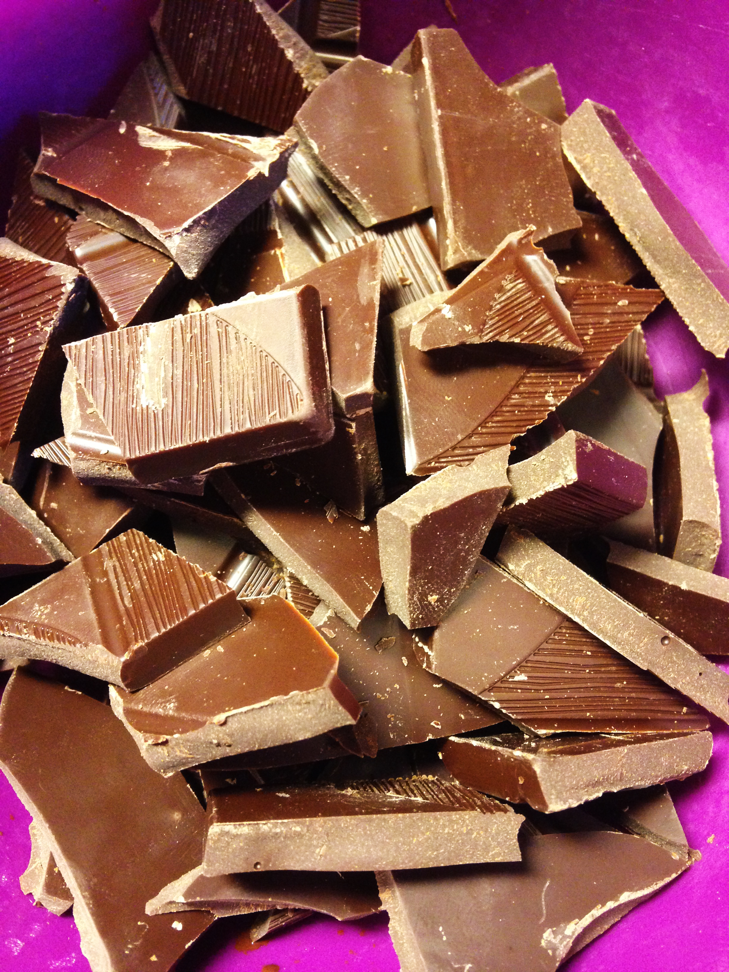 8. Hacka och smält chokladen, låt den svalna tills den är 34-35 grader.