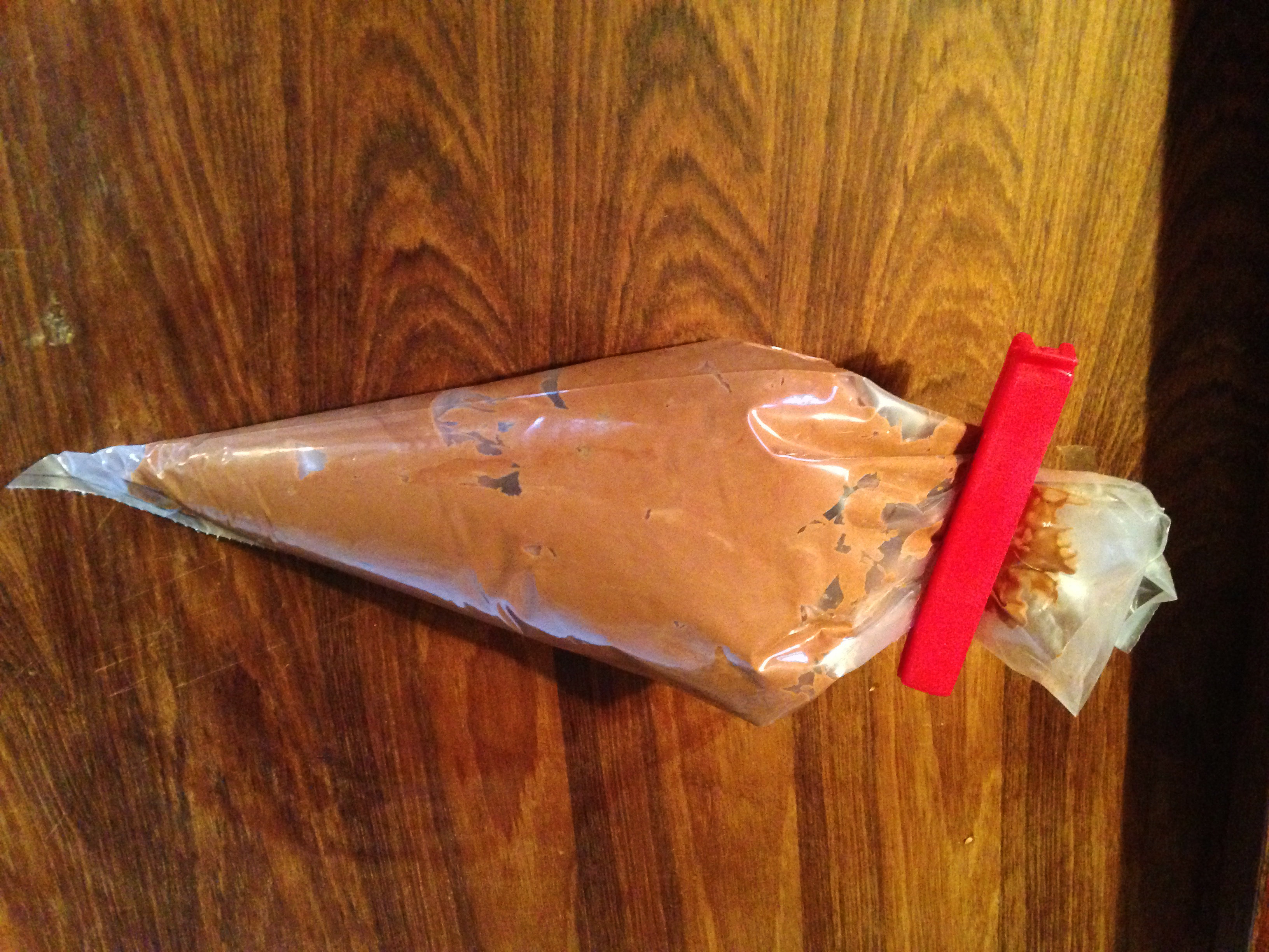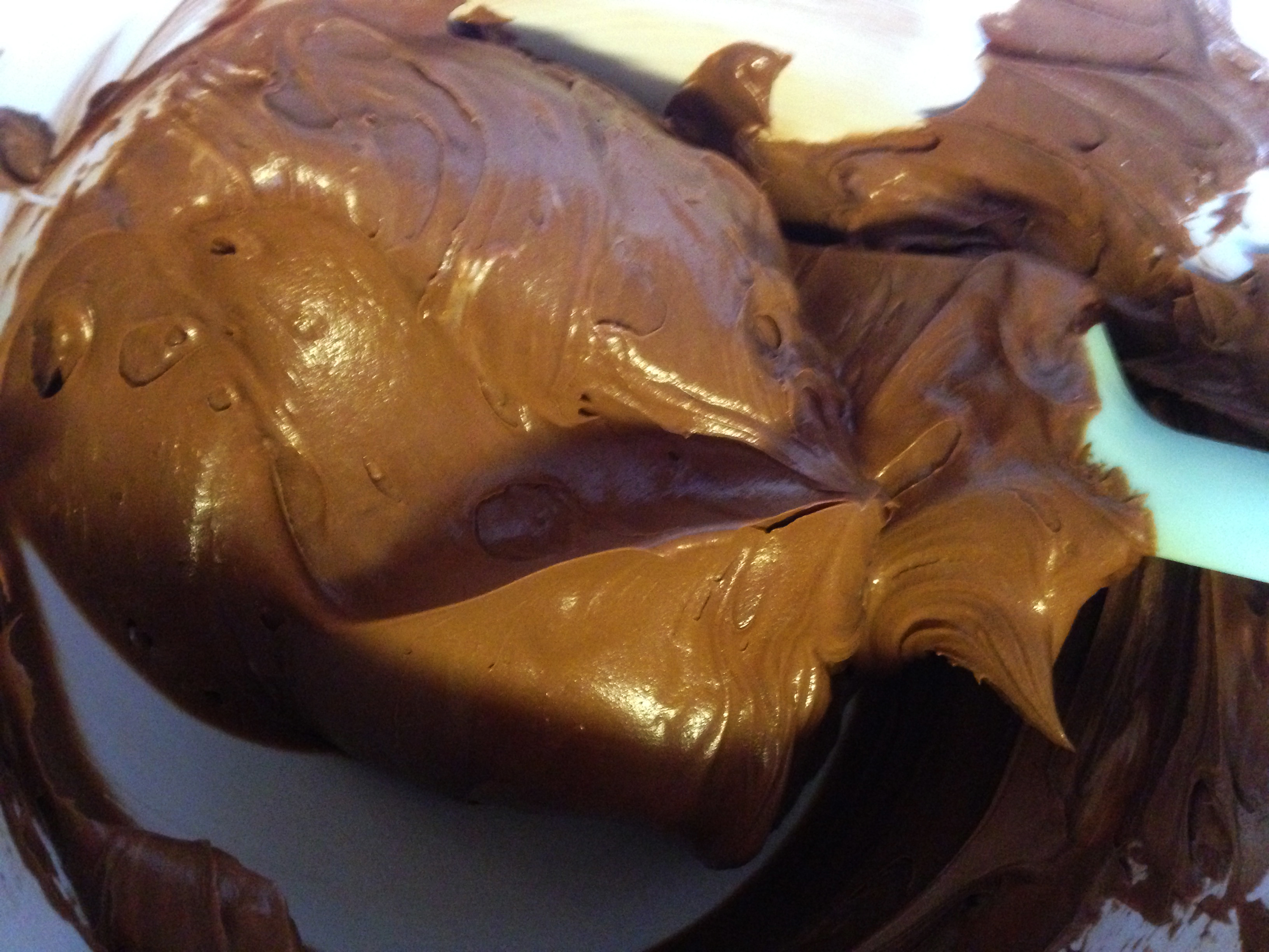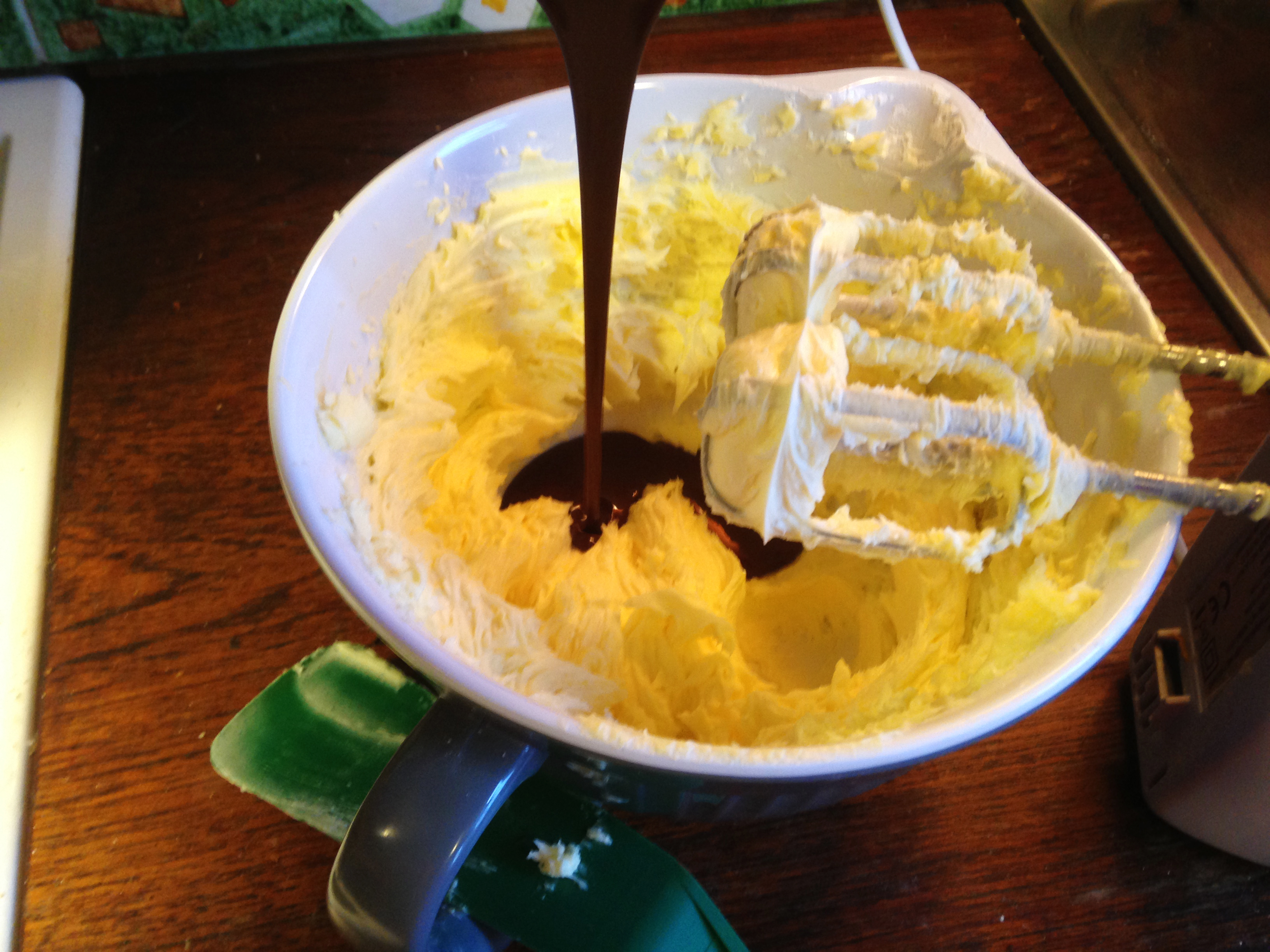 9. Vispa upp smör och florsocker. Vispa i chokladen. Fyll en spritspåse och lägg in i kylen en liten stund.