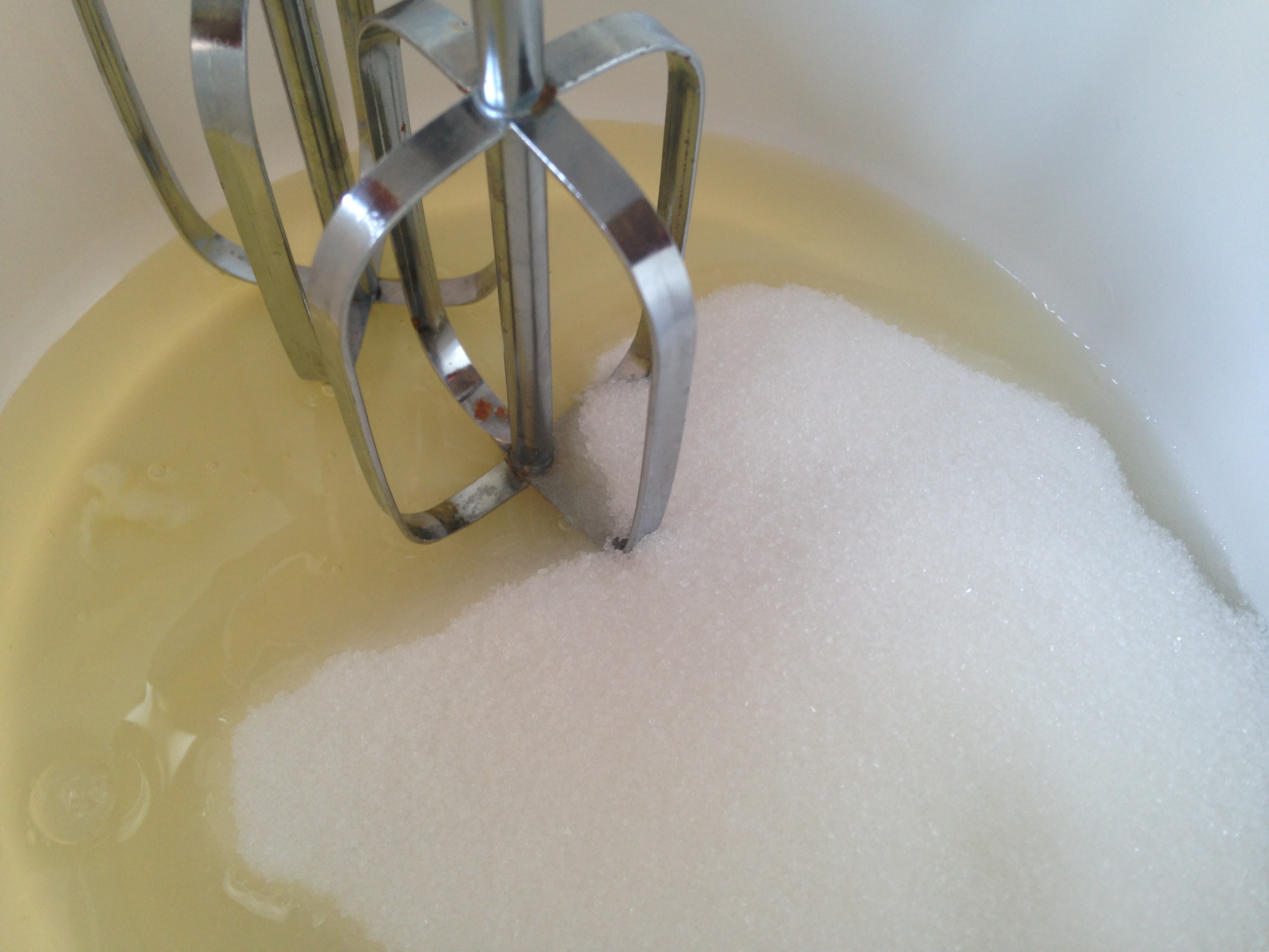 2. Vispa äggvitor och strösocker till en fast, blank maräng.