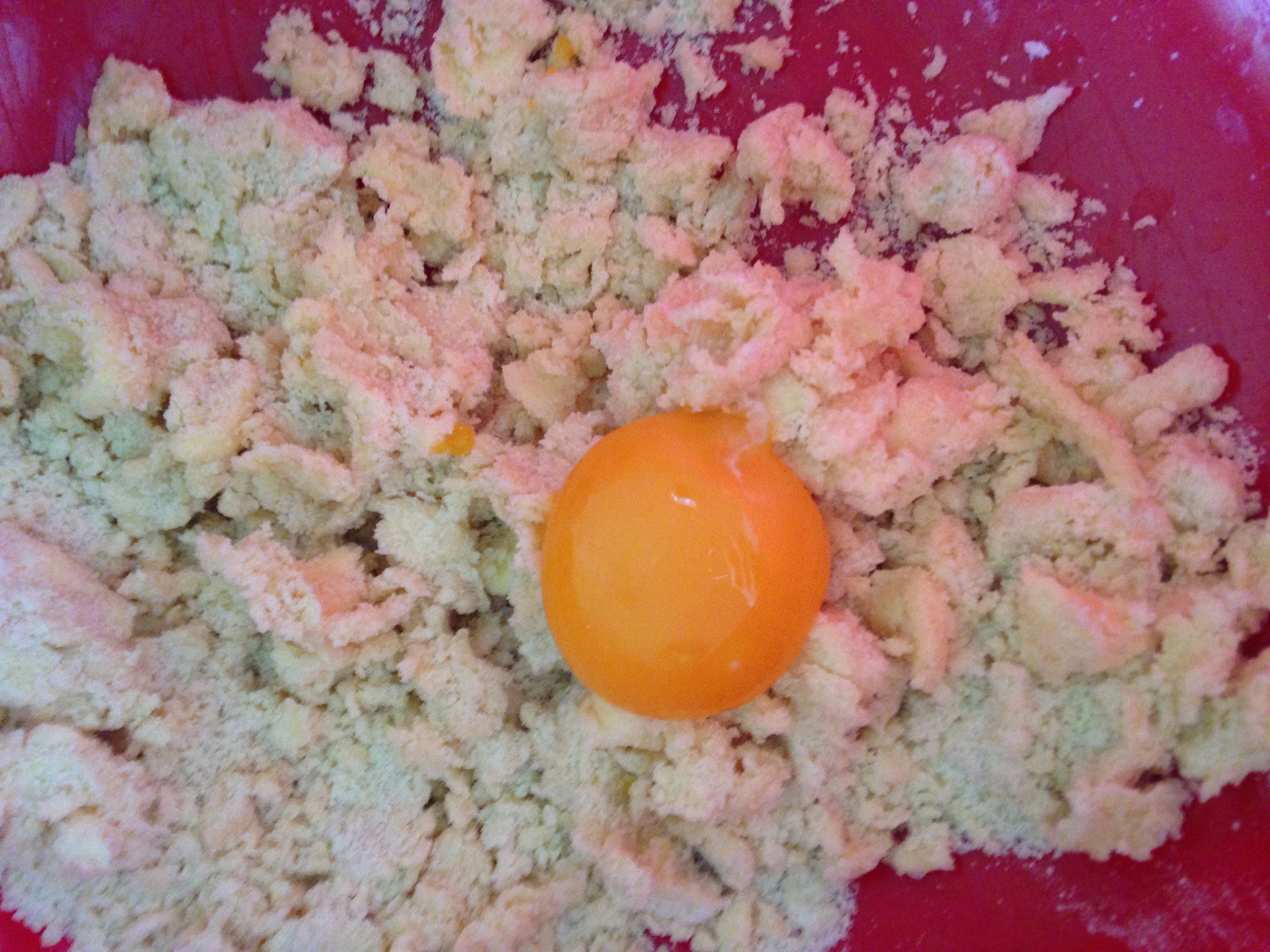 Arbeta in tärnat kallt smör i mjöl och socker. Tillsätt äggulan och arbeta ihop till en deg. Låt vila i kylen ca 10 min.
