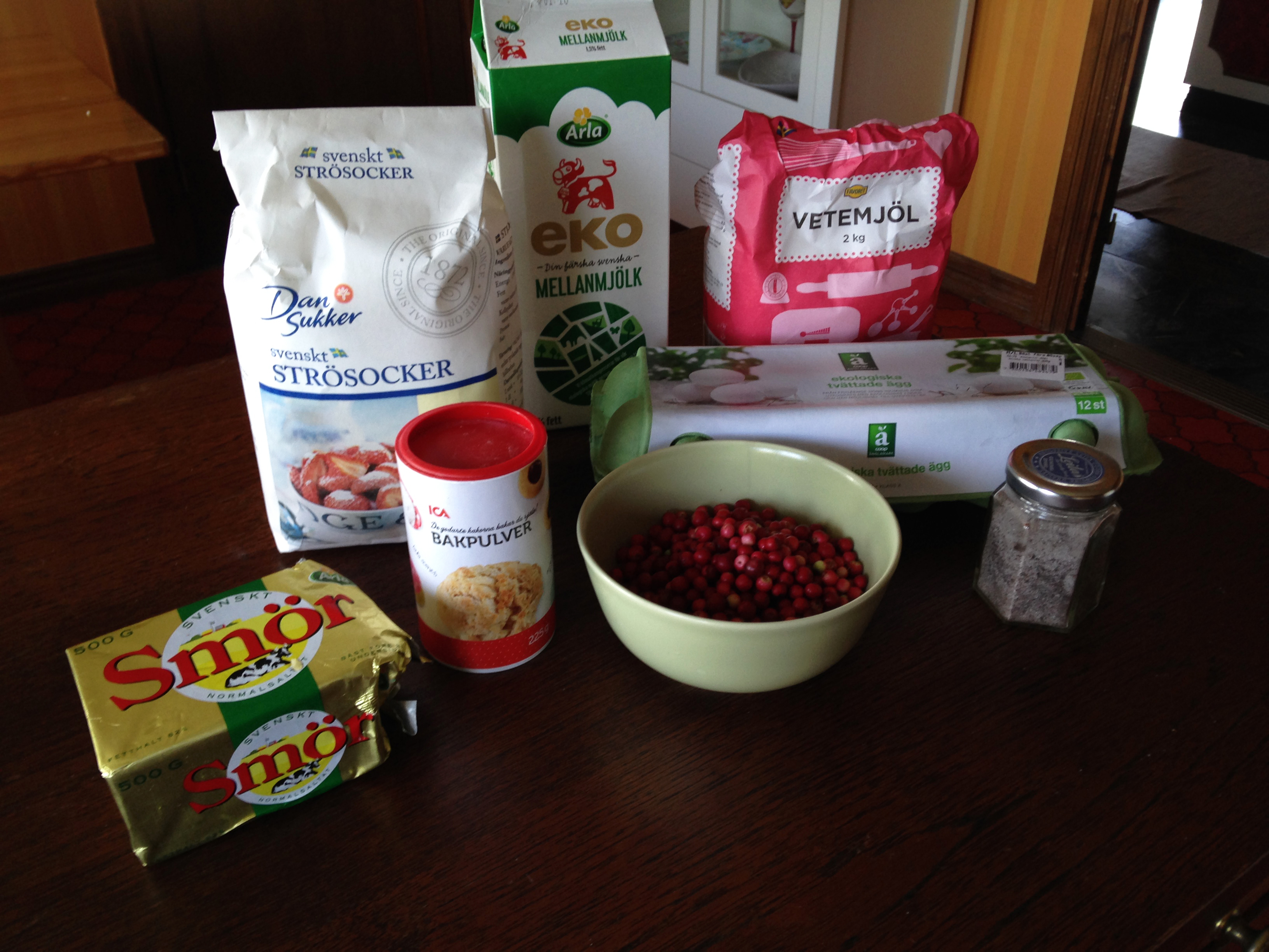 Jättegoda muffins med härligt fräscha lingon. När lingonen kommer i skogen i sensommar så gör dessa goda muffins. Receptet kommer ifrån tidningen Hemmets journal. Jag har ändrat receptet lite genom att tillsätta äkta vaniljsocker.