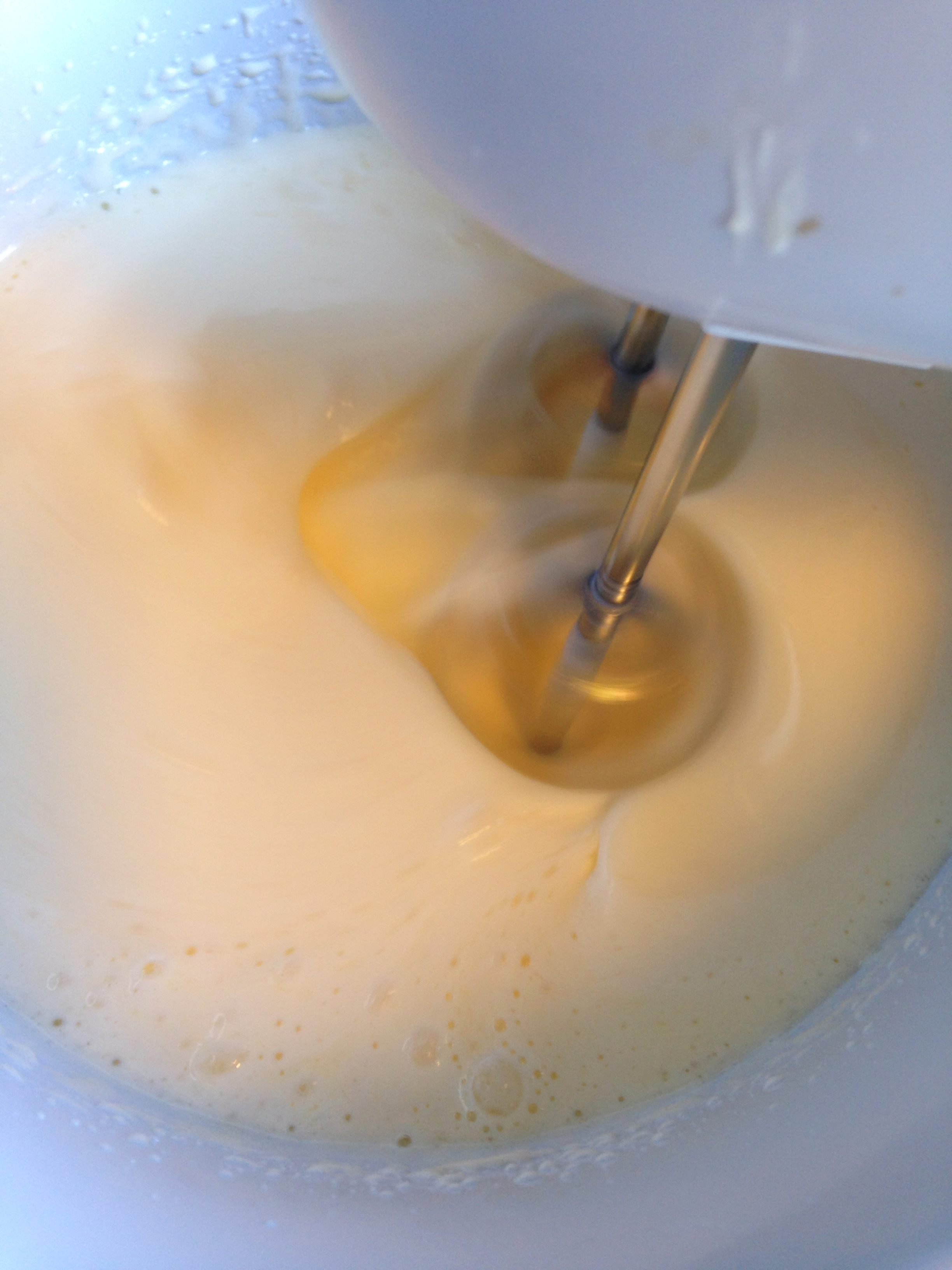 1. Sätt ugnen på 200 grader. Vispa ägg och strösocker pösigt.