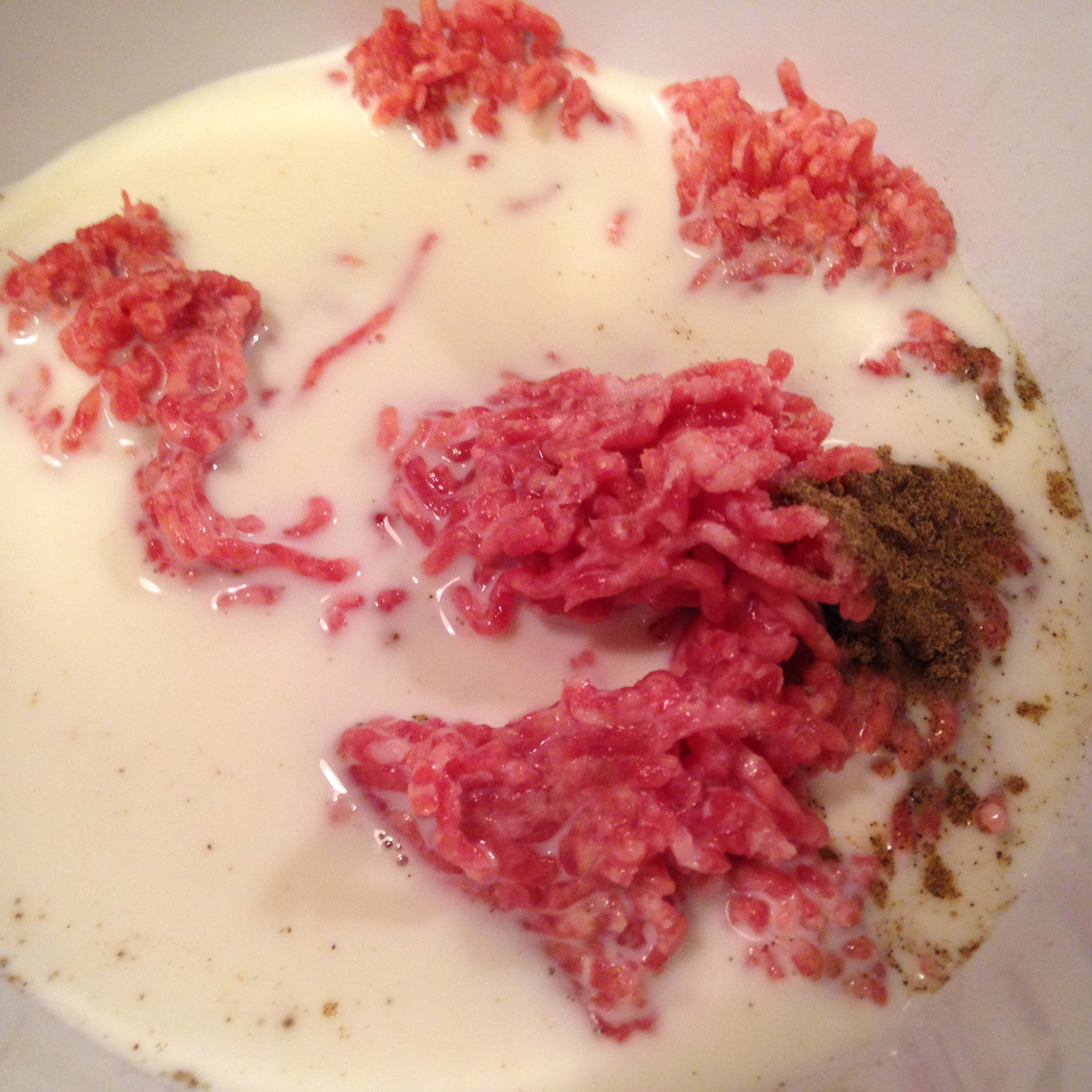 1. Blanda färs, salt, svartpeppar och mjölk.