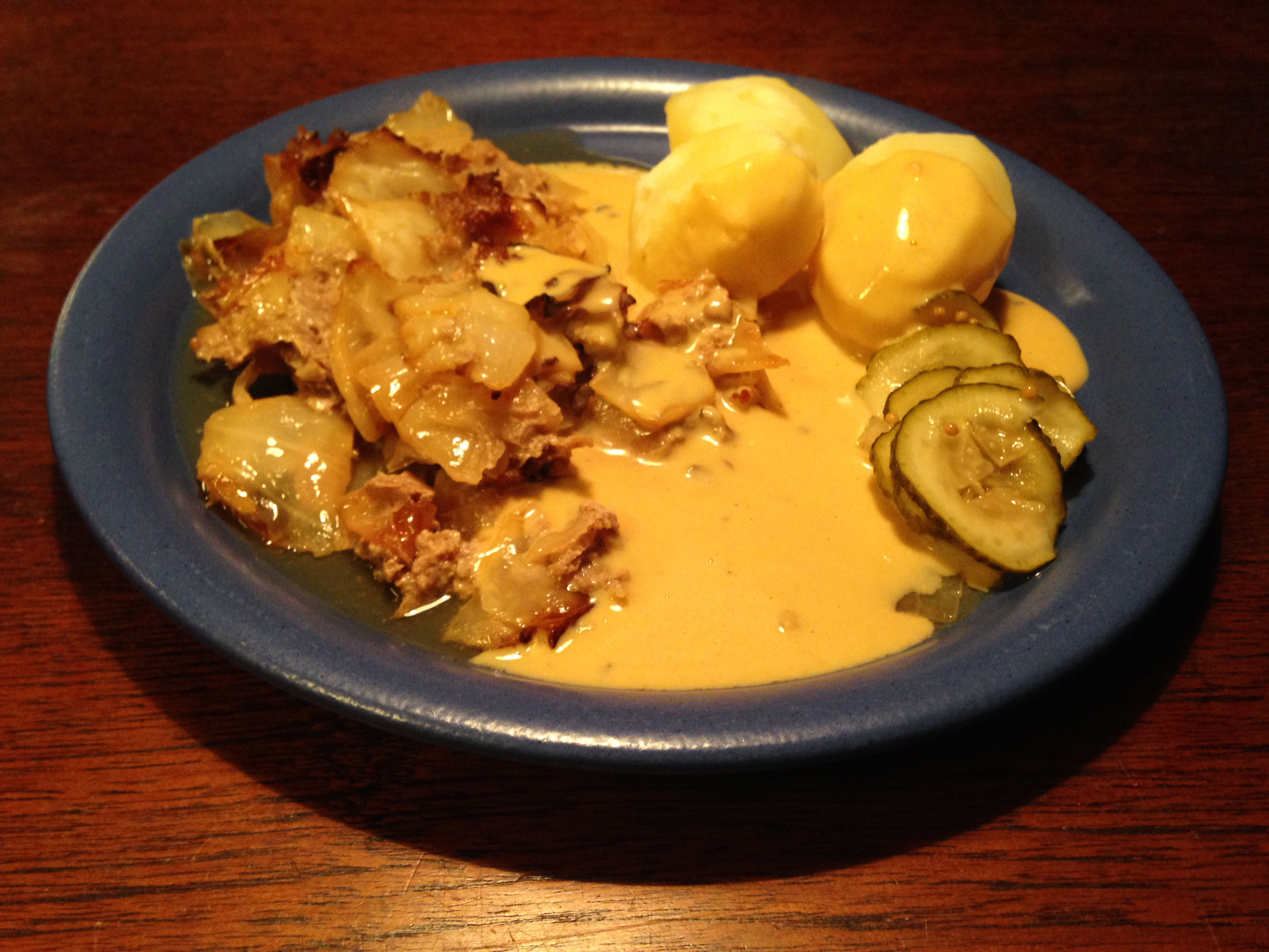 4. Mitt serveringsförslag är med kokt potatis, sås och inlagd gurka.