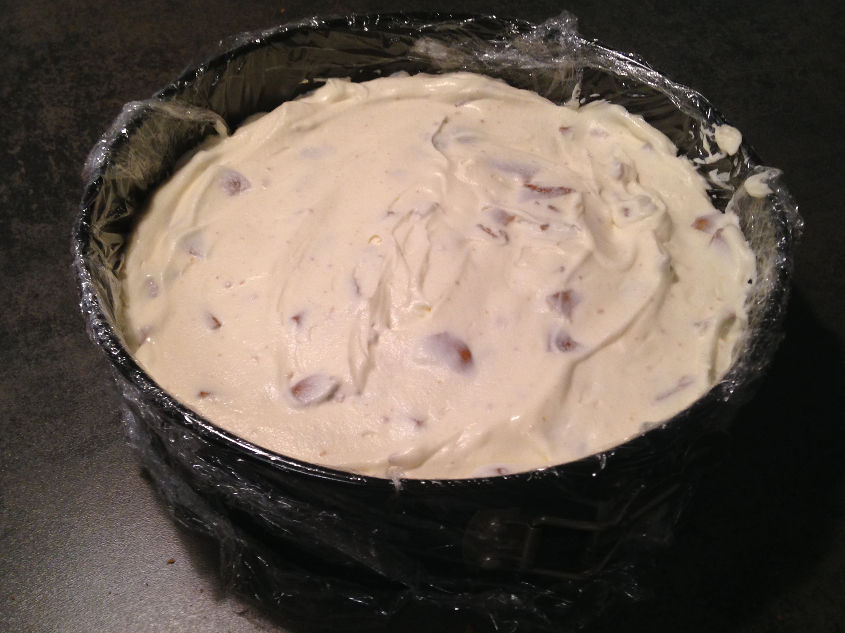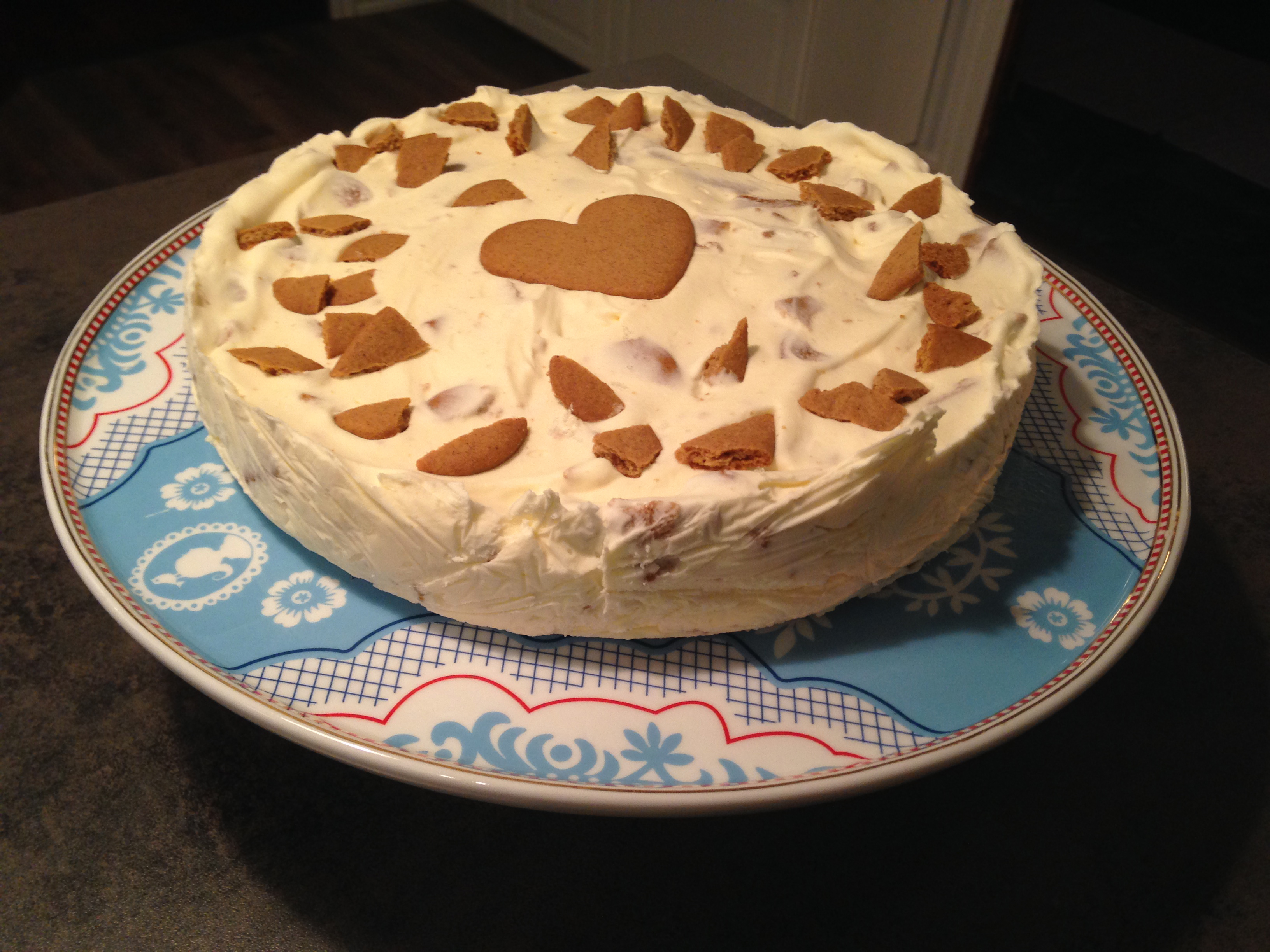 4. Täck en form med plastfolie om du vill kunna ta ut glassen på ett fat. Häll ut glassmeten i formen och strö lite pepparkaka på toppen. Låt stå i frysen över natten eller i ett par timmar tills den är genomfryst.