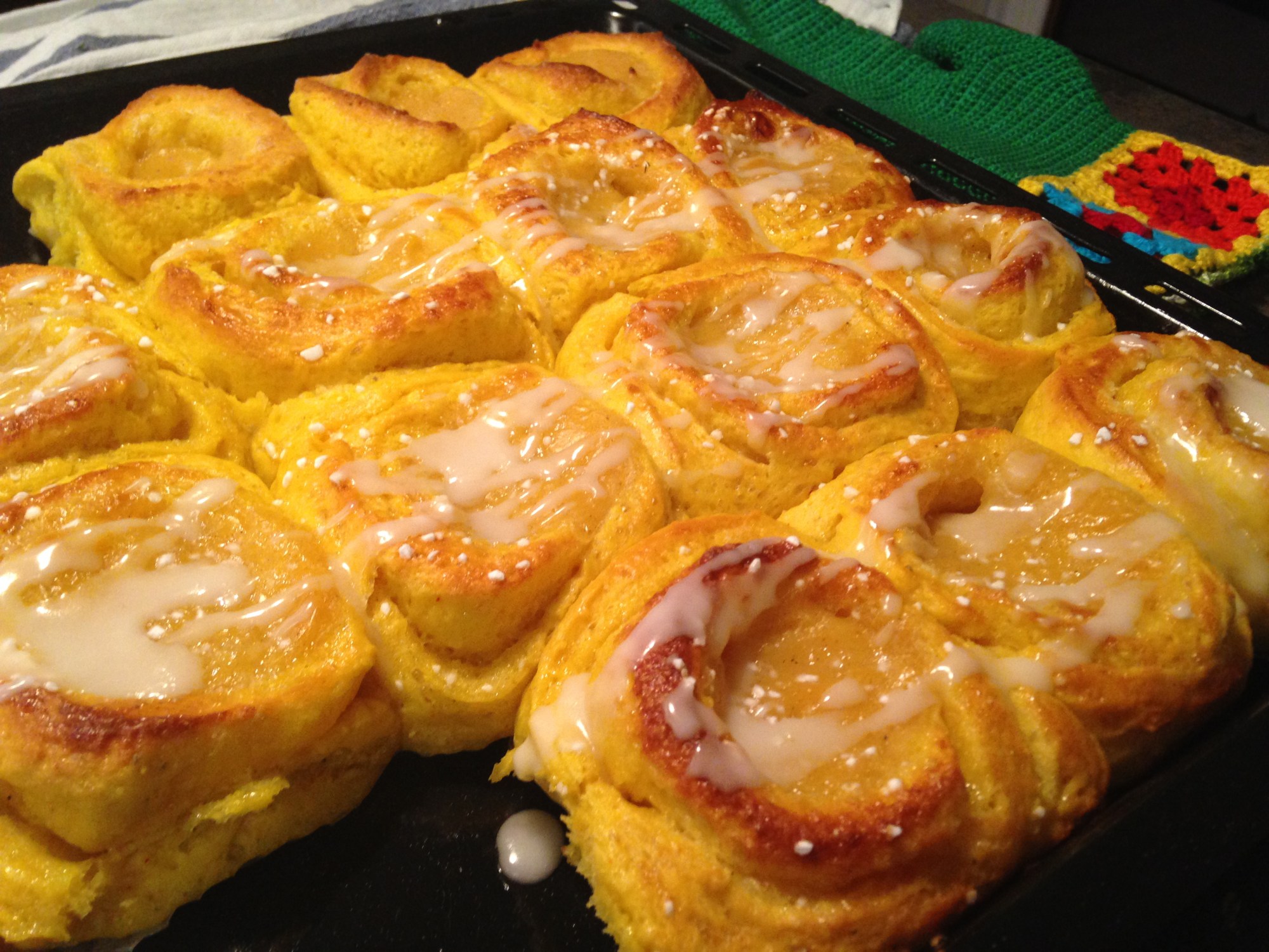 10. När bullarna svalnat så blandar du florsocker och apelsinsaft till en slät glasyr och ringla över bullarna.